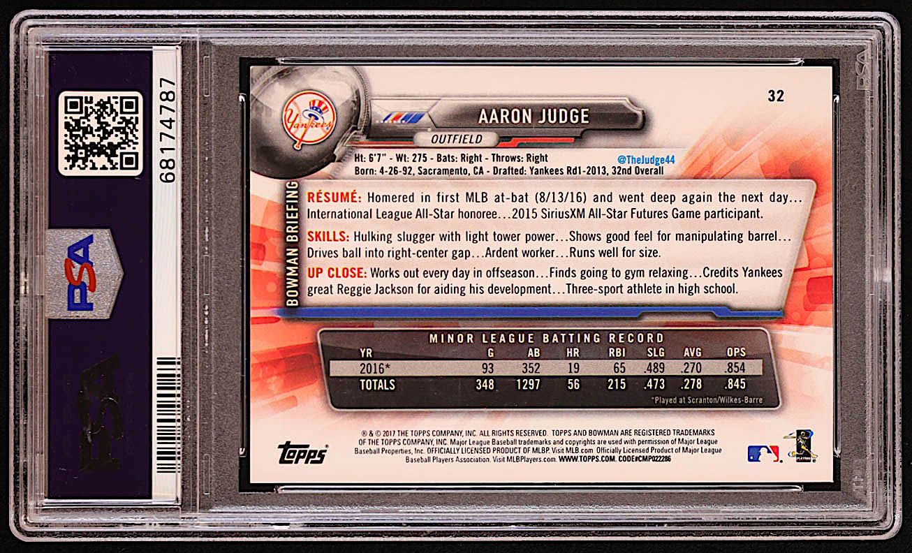 Aaron Judge 2017 Bowman #32 RC (PSA 9)