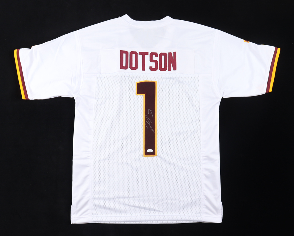 Custom jersey. Everything is sewn on, size XL. Hand-signed by Jahan Dotson.