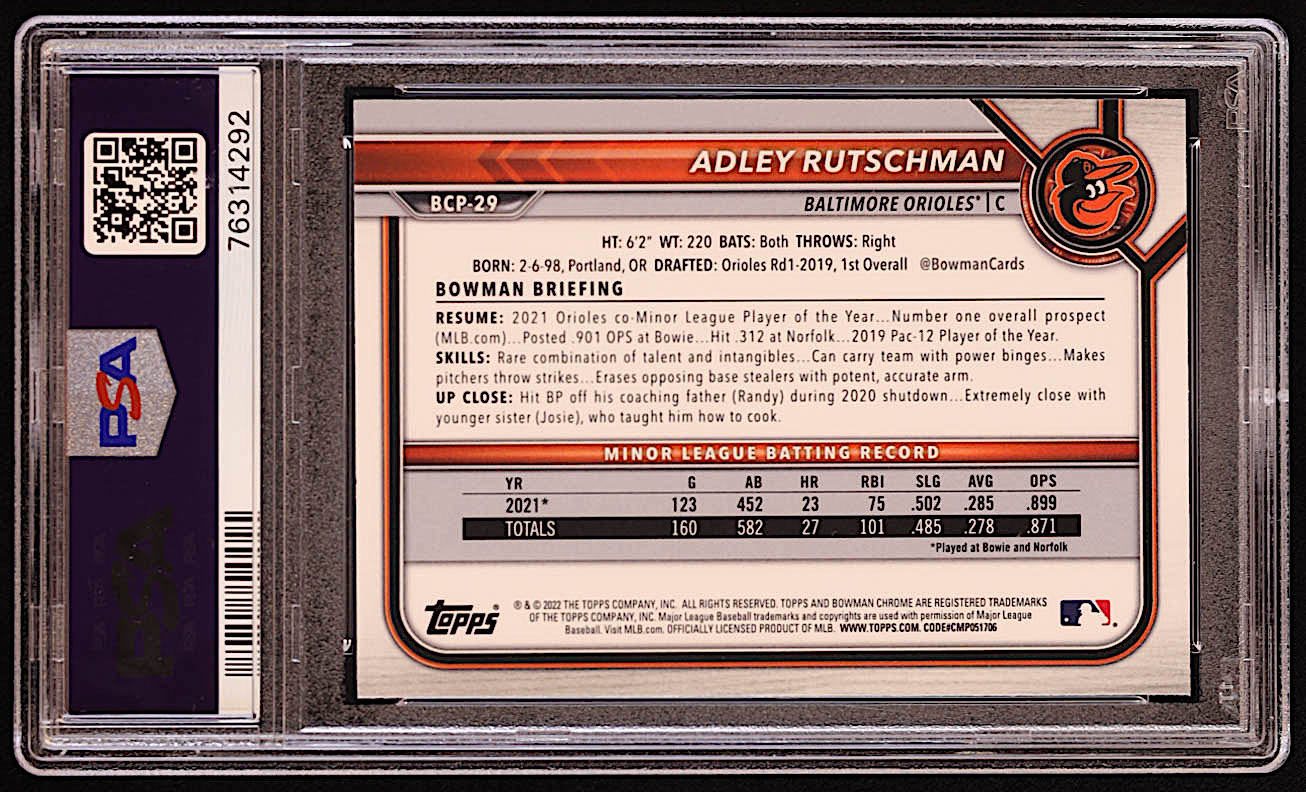 Adley Rutschman 2022 Bowman Chrome Prospects #BCP29 RC (PSA 10)
