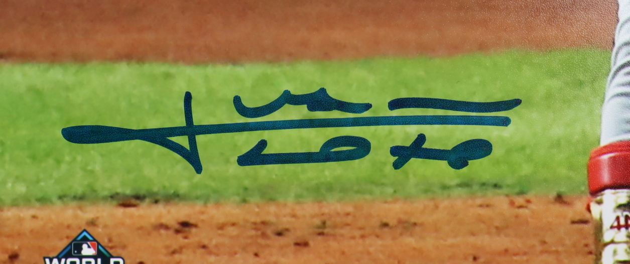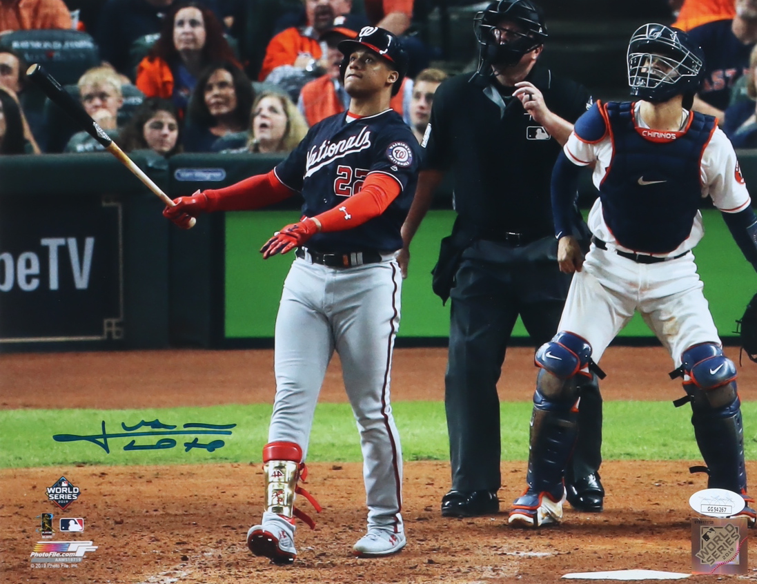 Photo measures 11" x 14" in size and has been hand-signed by Juan Soto (Washington Nationals).