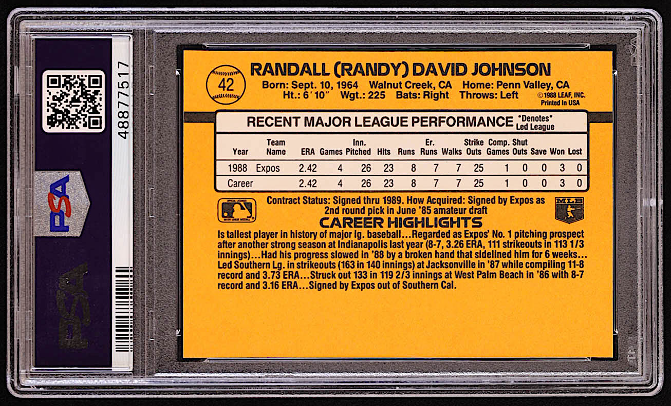 Randy Johnson 1989 Donruss #42 RR RC (PSA 9)