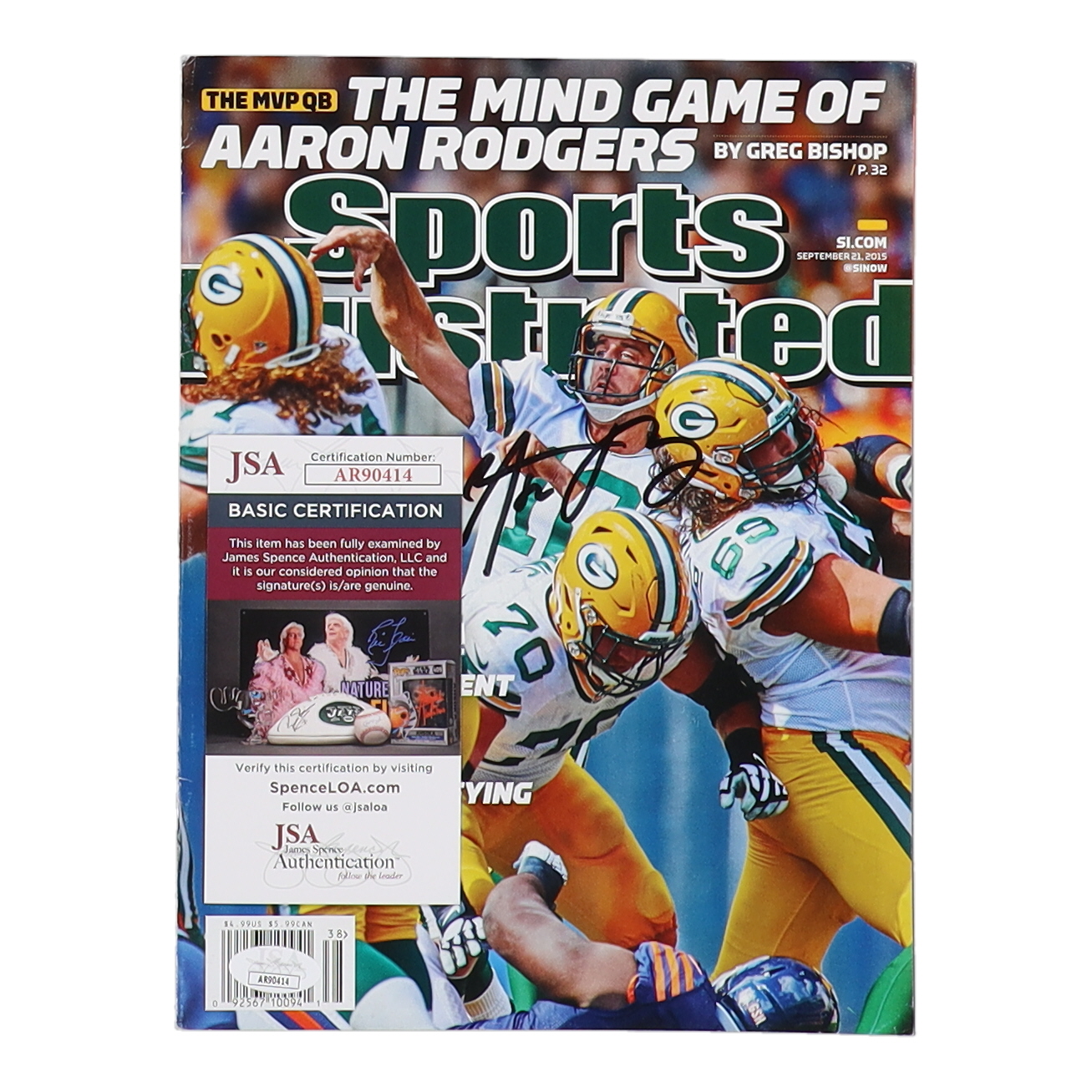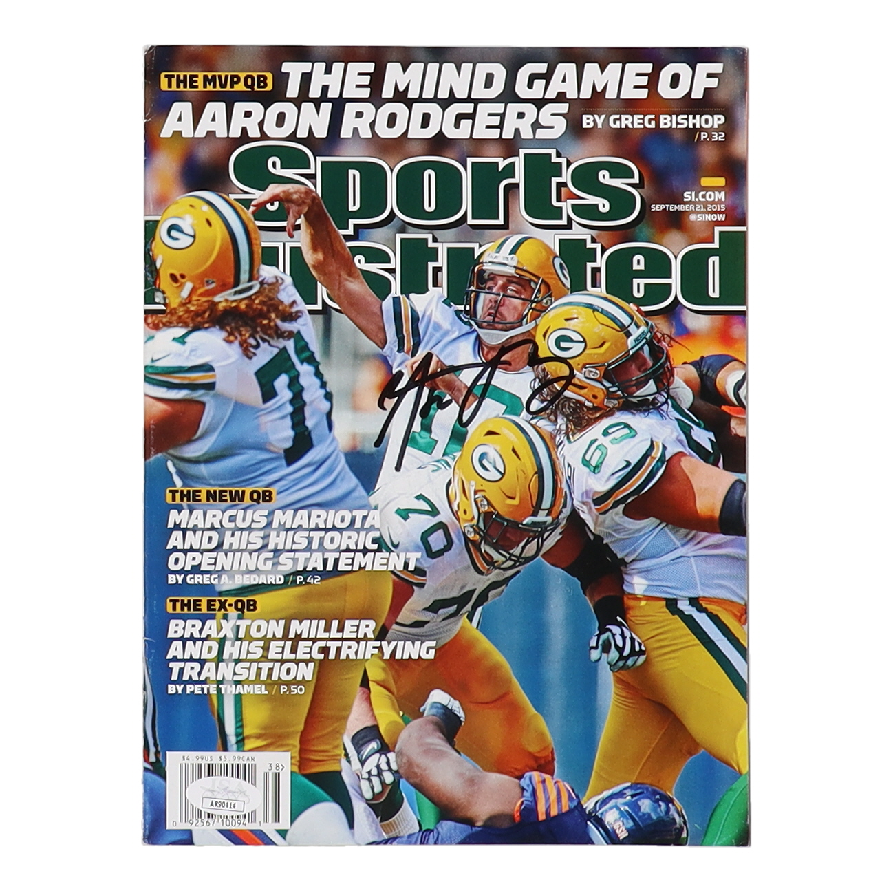 September 21, 2015 "Sports Illustrated" magazine has been hand-signed on the front cover by Aaron Rodgers (Green Bay Packers).