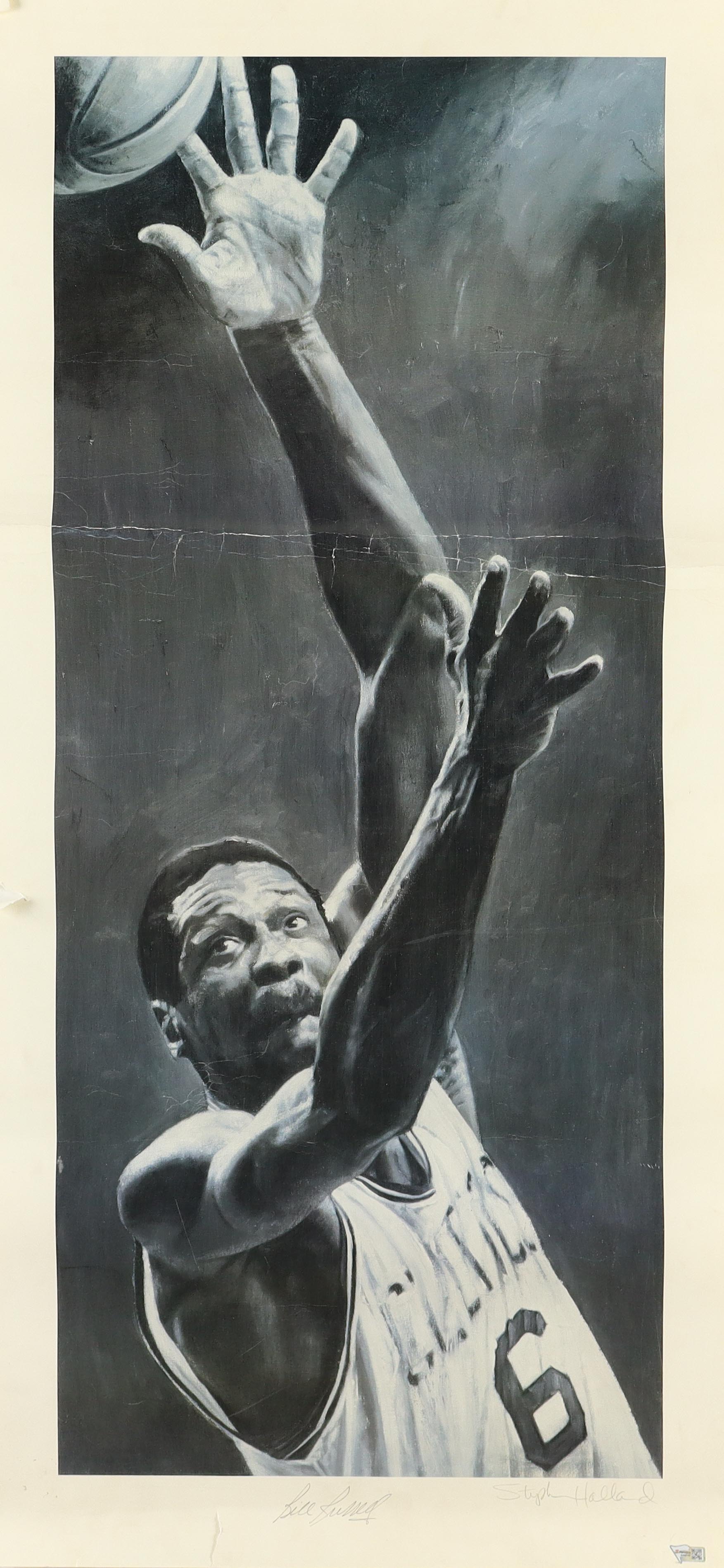 Lithograph measures 18.5" x 40" in size. Hand-signed by Bill Russell (D. 2022, Boston Celtics, HOF).