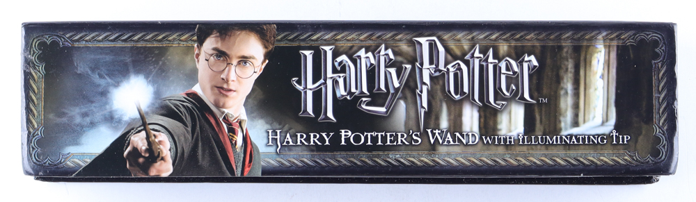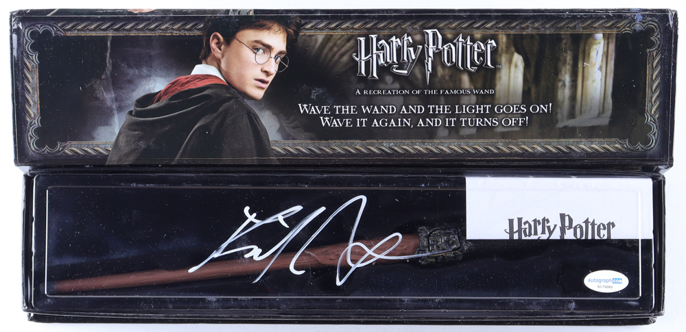 Toy wand has been hand-signed on the packaging by Daniel Radcliffe. Please note, there is corner creasing and scuffing on the original packaging.