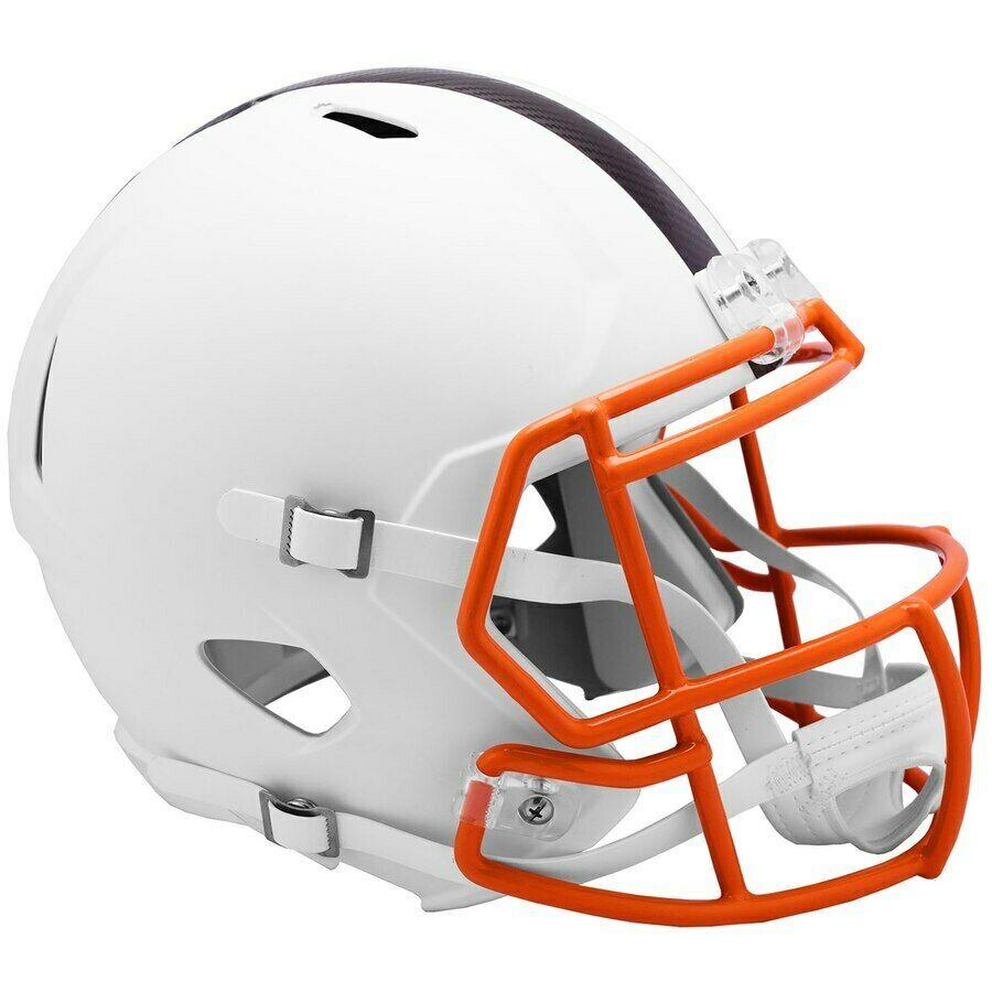 Riddell Cleveland Browns full-size matte white replica speed helmet. Please note, helmet is unsigned.