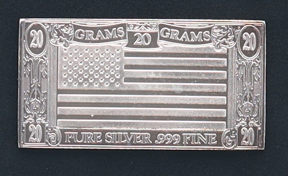 The Silver Mint American Flag 20 gram .999 Fine Silver Bullion Bar
