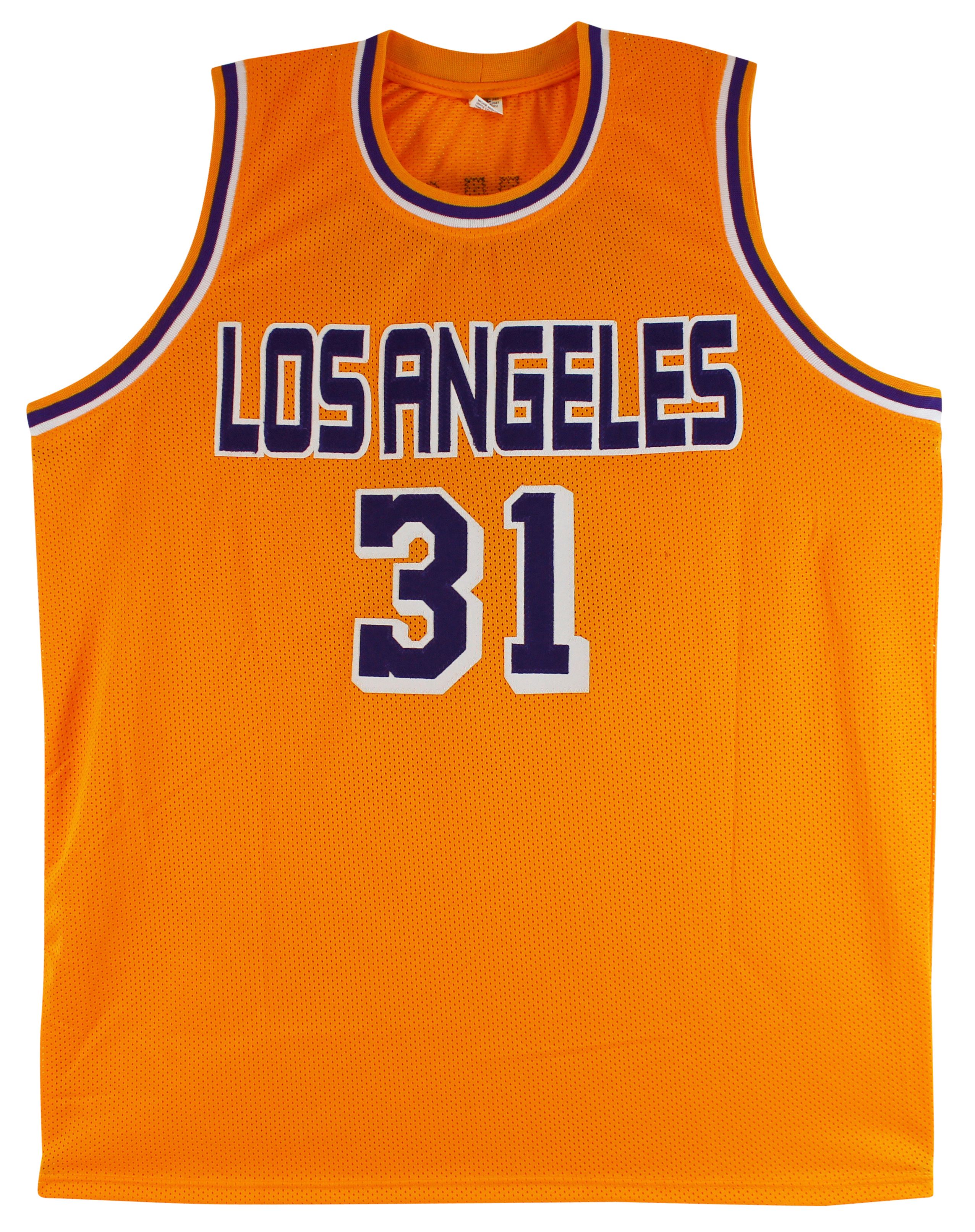 Custom jersey. Everything is sewn on, size XL. Hand-signed and inscribed by Kurt Rambis.