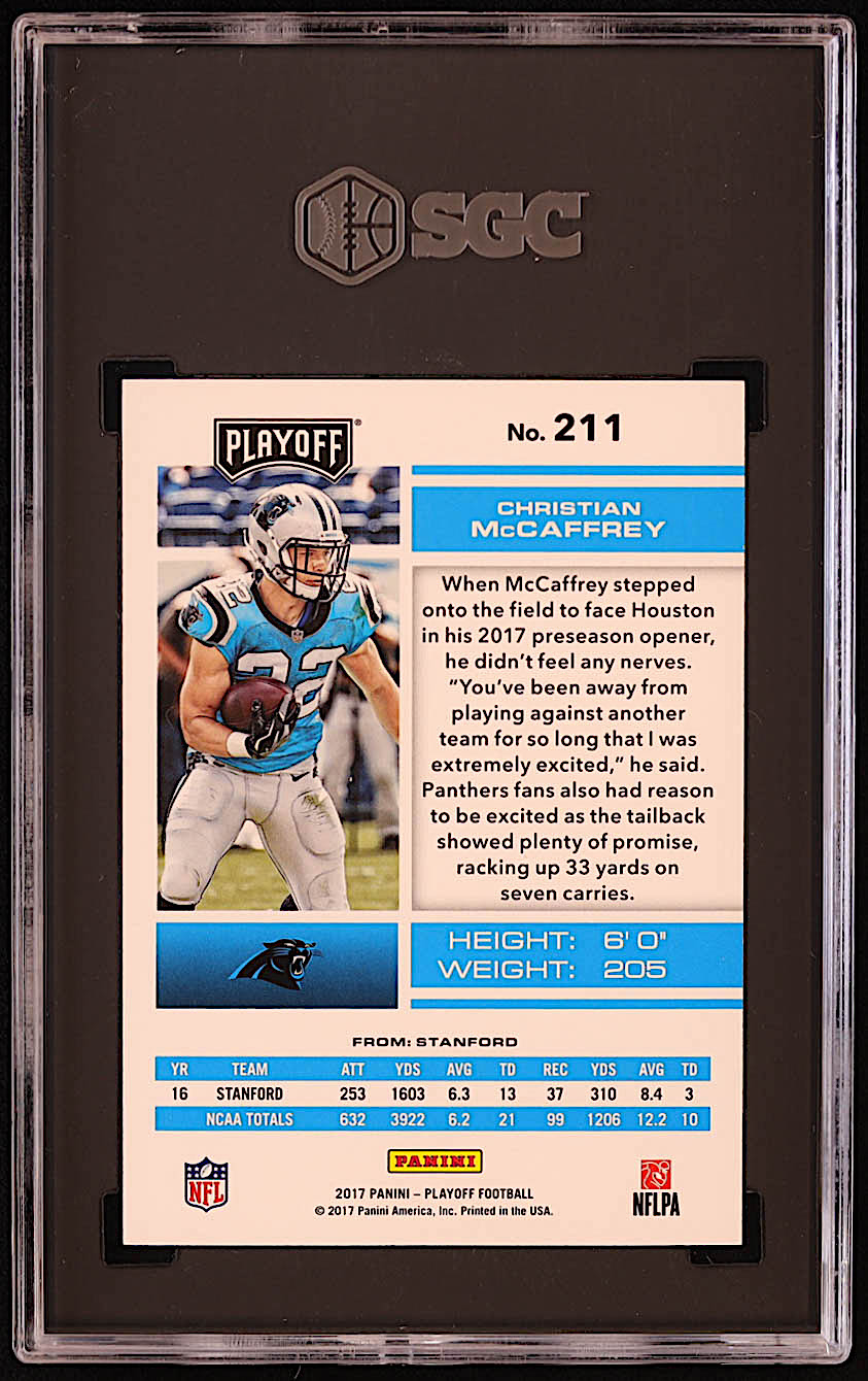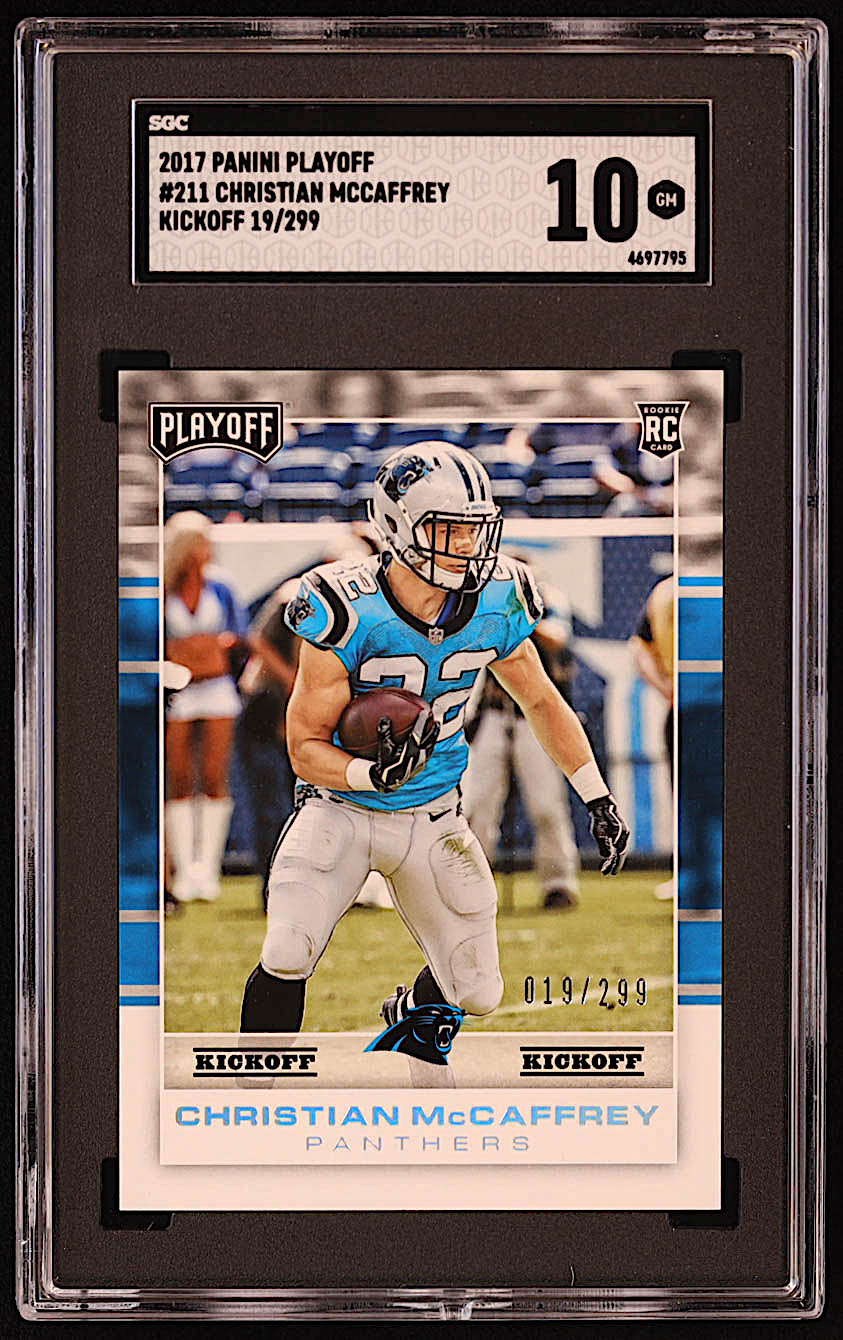 Christian McCaffrey 2017 Playoff Kickoff #211 RC #19/299 (SGC 10)
