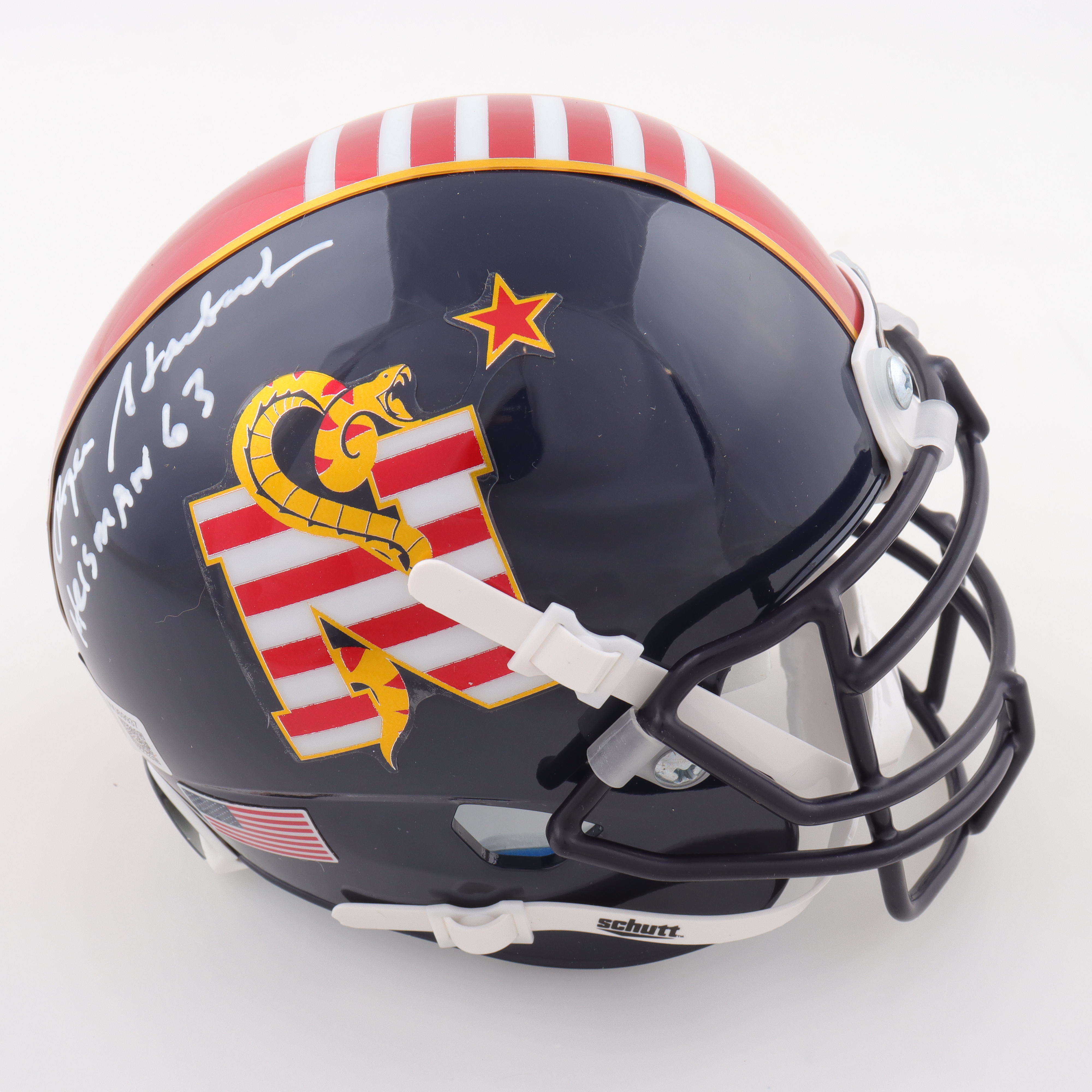 Schutt Navy Midshipmen Speed mini helmet. Hand-signed by Roger Staubach (HOF).