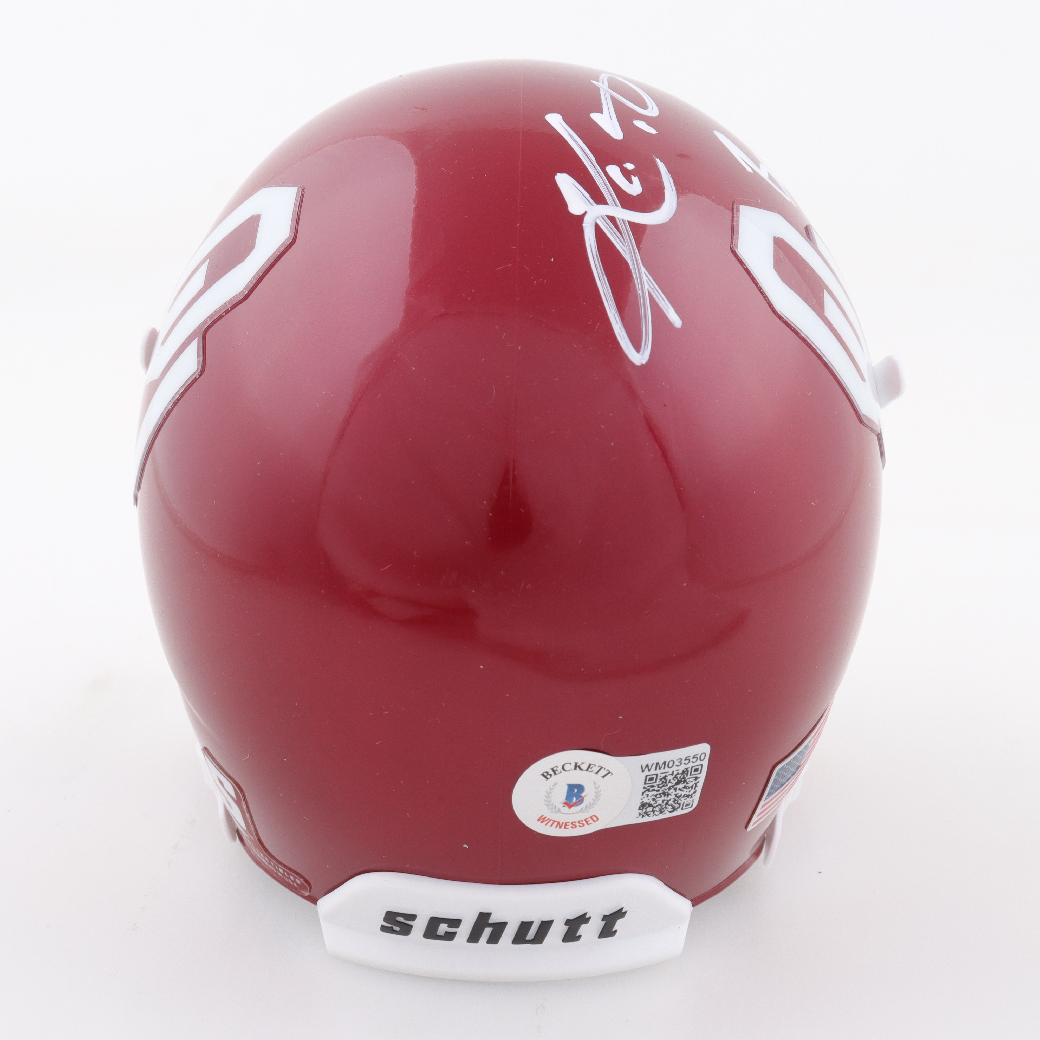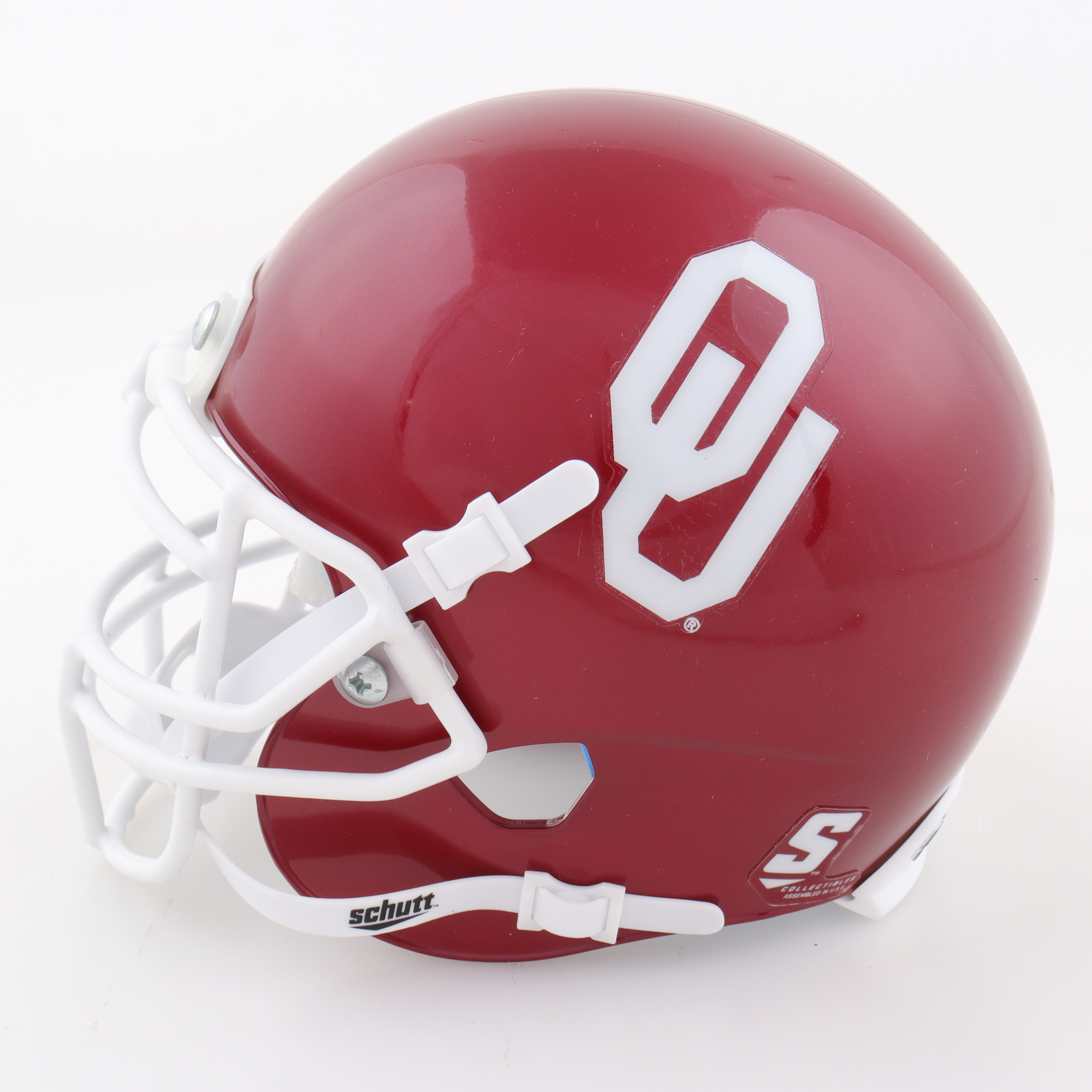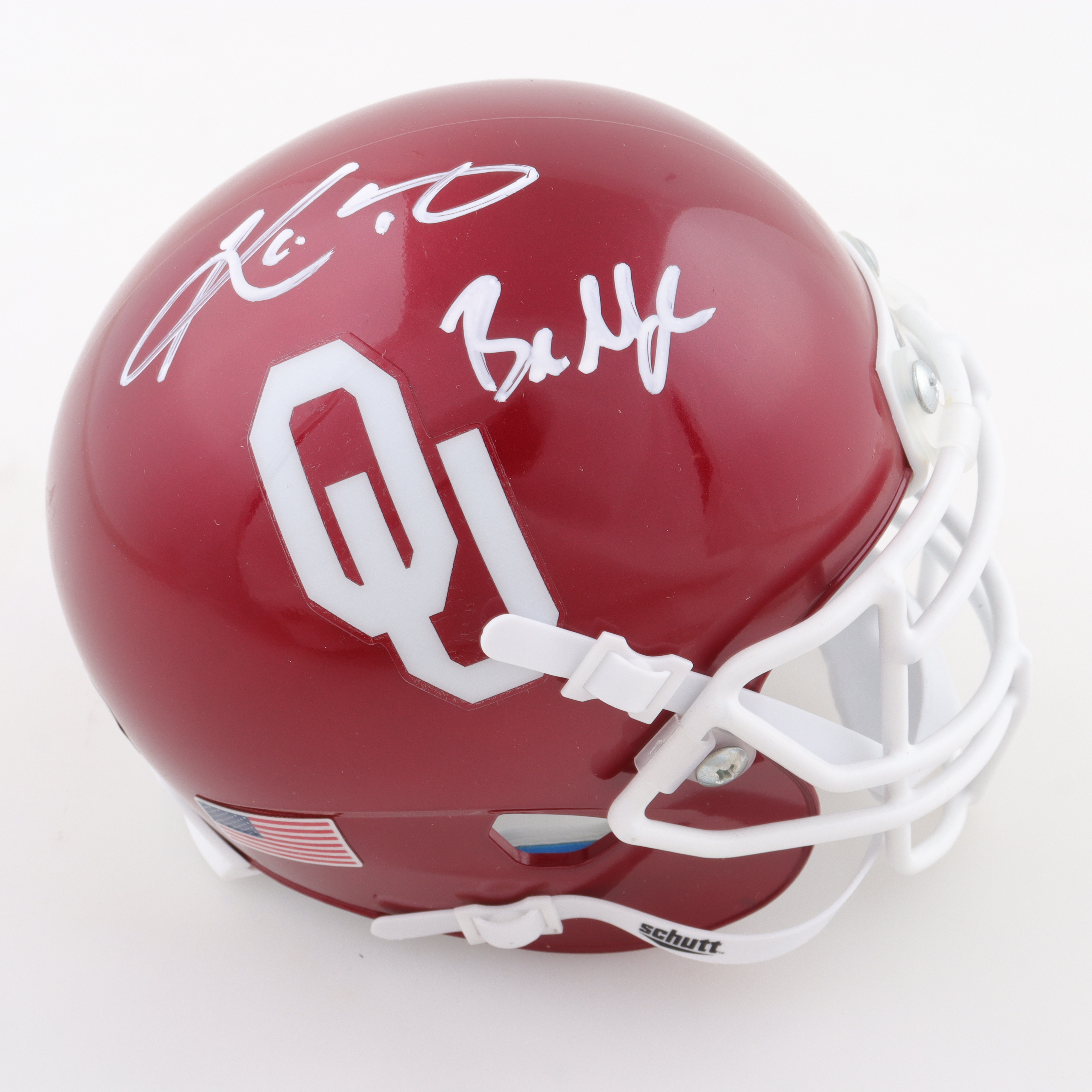 Schutt Oklahoma Sooners mini helmet has been hand-signed in by Kyler Murray and Baker Mayfield.