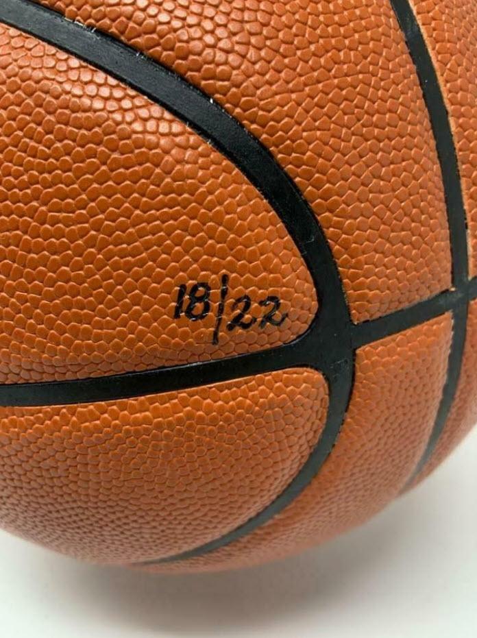 Spalding Official NBA Game Ball Series basketball. Hand-signed and inscribed by Deandre Ayton (Phoenix Suns). Basketball is limited edition #18/22.