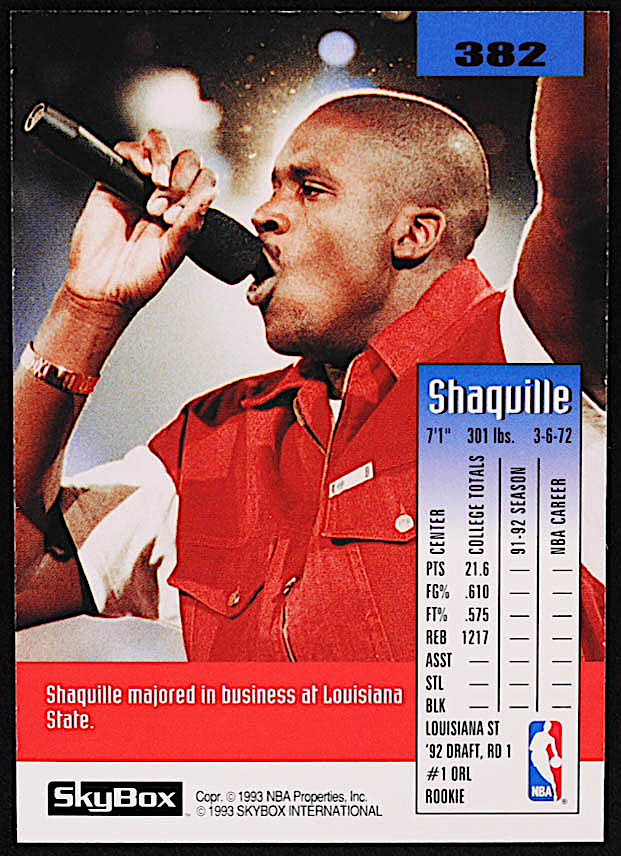 Shaquille O'Neal 1992-93 SkyBox #382 SP RC