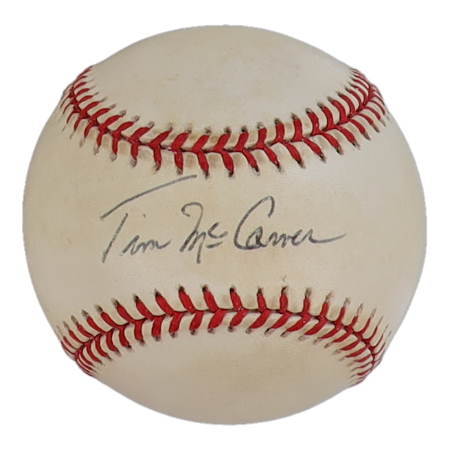 Rawlings Official American League Baseball. Hand-signed by Tim McCarver (Philadelphia Phillies). Please note, the baseball is naturally toned.