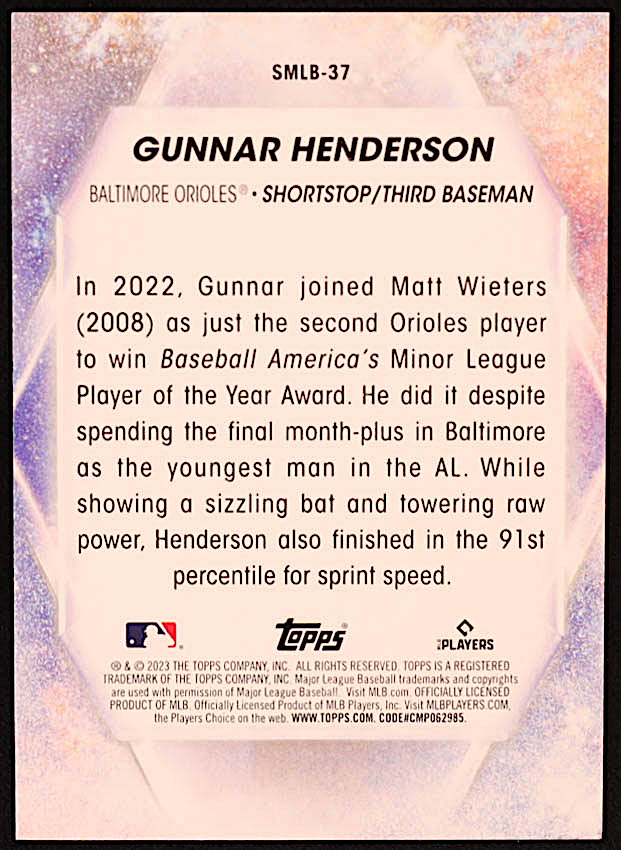 Gunnar Henderson 2023 Topps Stars of MLB #SMLB37 RC
