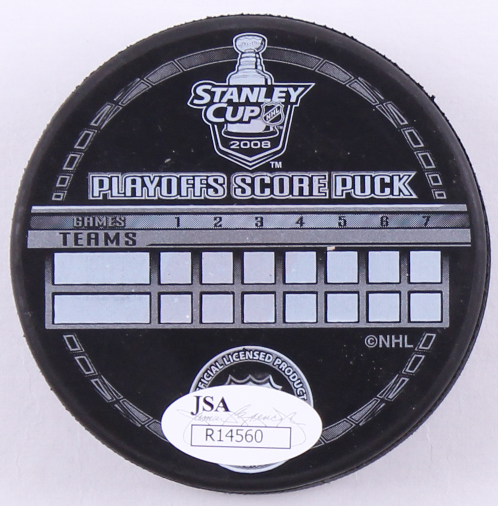 Mike Modano Signed 2008 Stanley Cup Playoffs Score Hockey Puck (JSA COA)