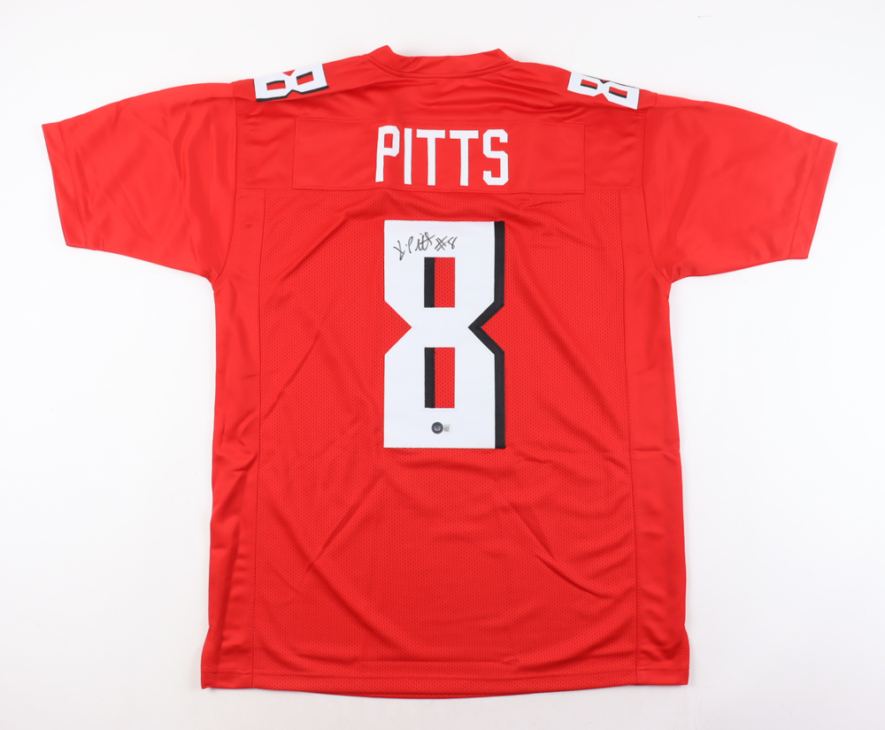 Custom jersey with everything sewn on, size XL. Hand-signed by Kyle Pitts.
