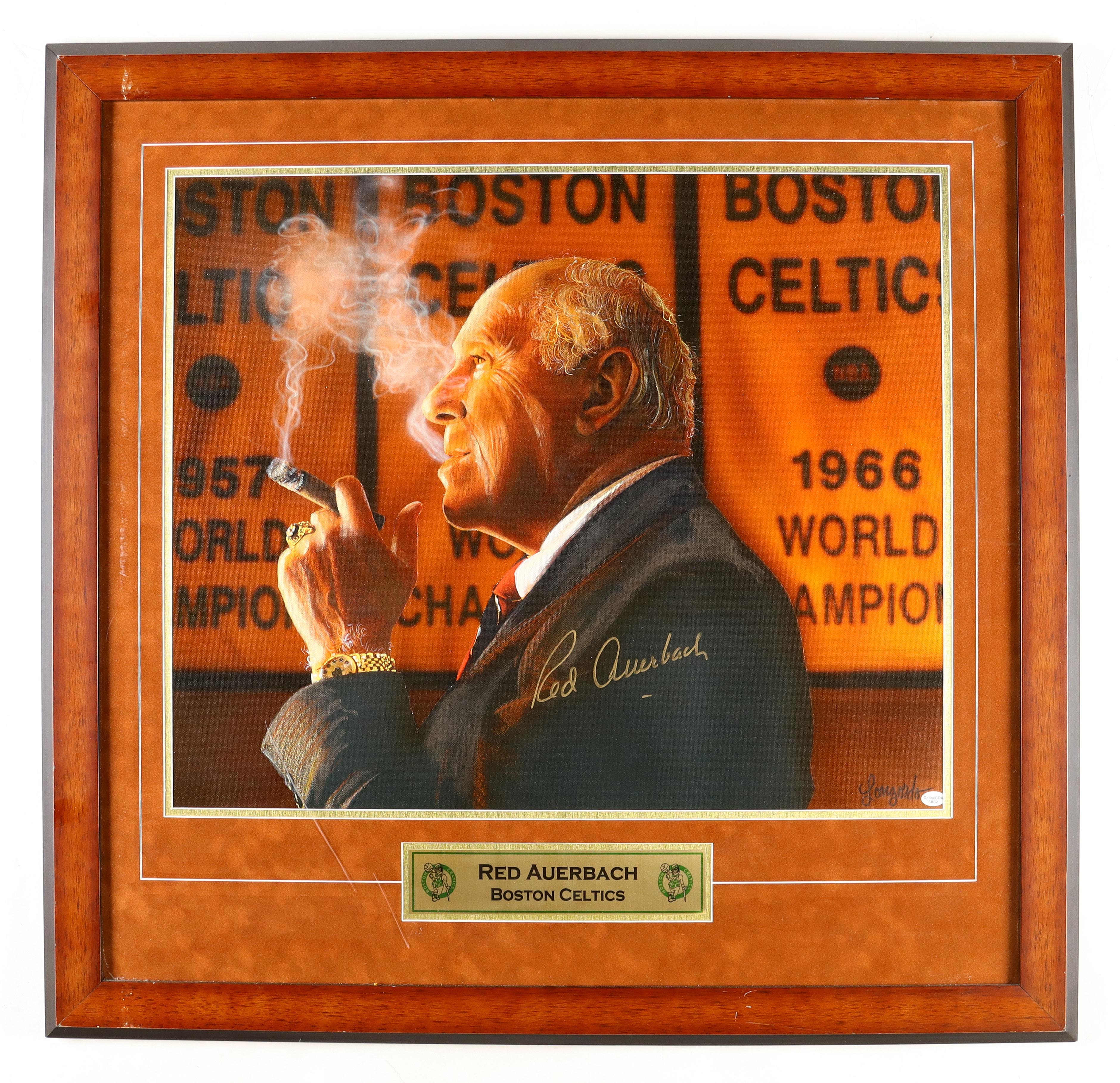 Red Auerbach Signed Gary Longordo Custom Framed Print Display (OnlineCOA)
