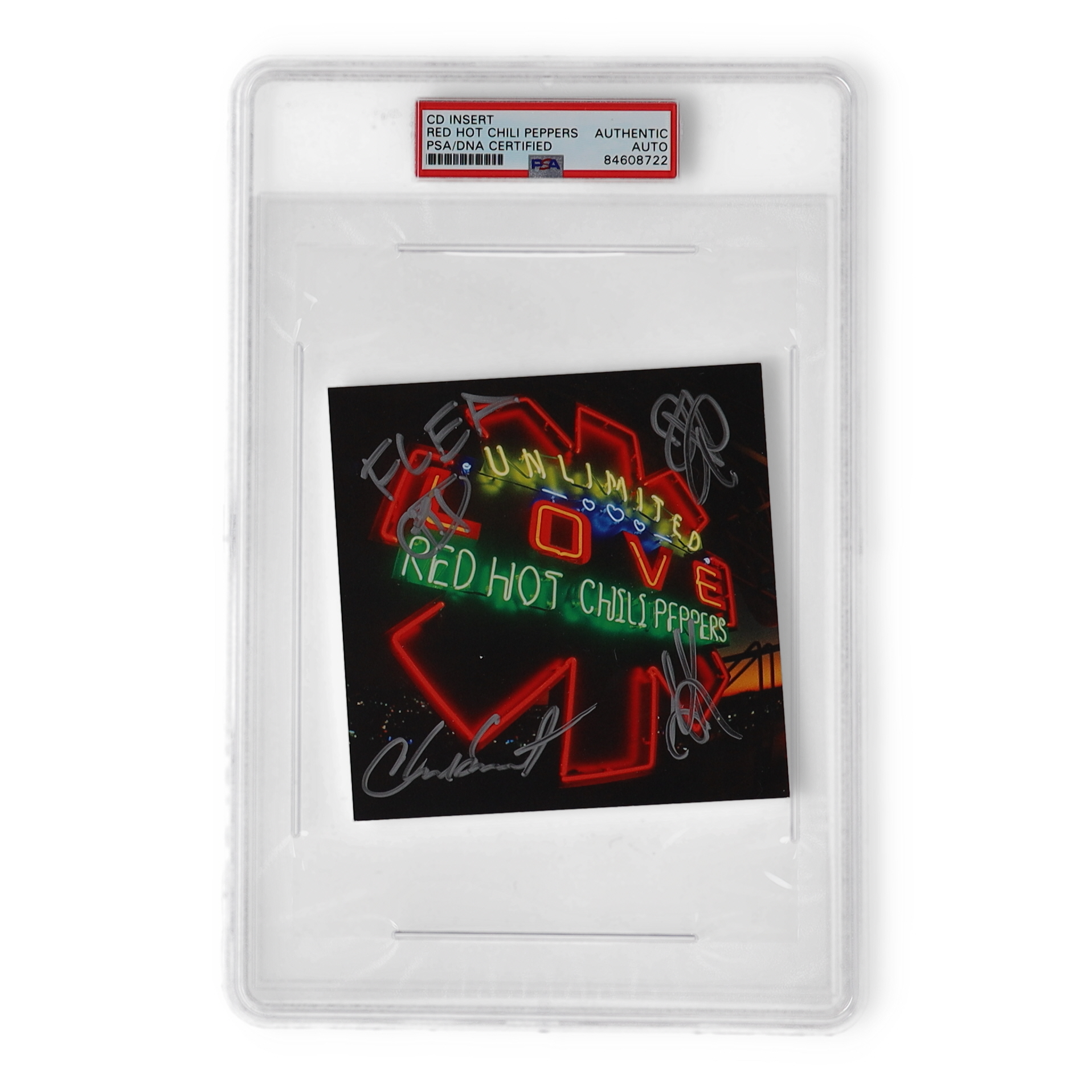 Red Hot Chili Peppers "Unlimited Love" CD Insert has been hand-signed by Flea, Chad Smith, Anthony Kiedis, & John Frusciante. Please note, CD is not included.