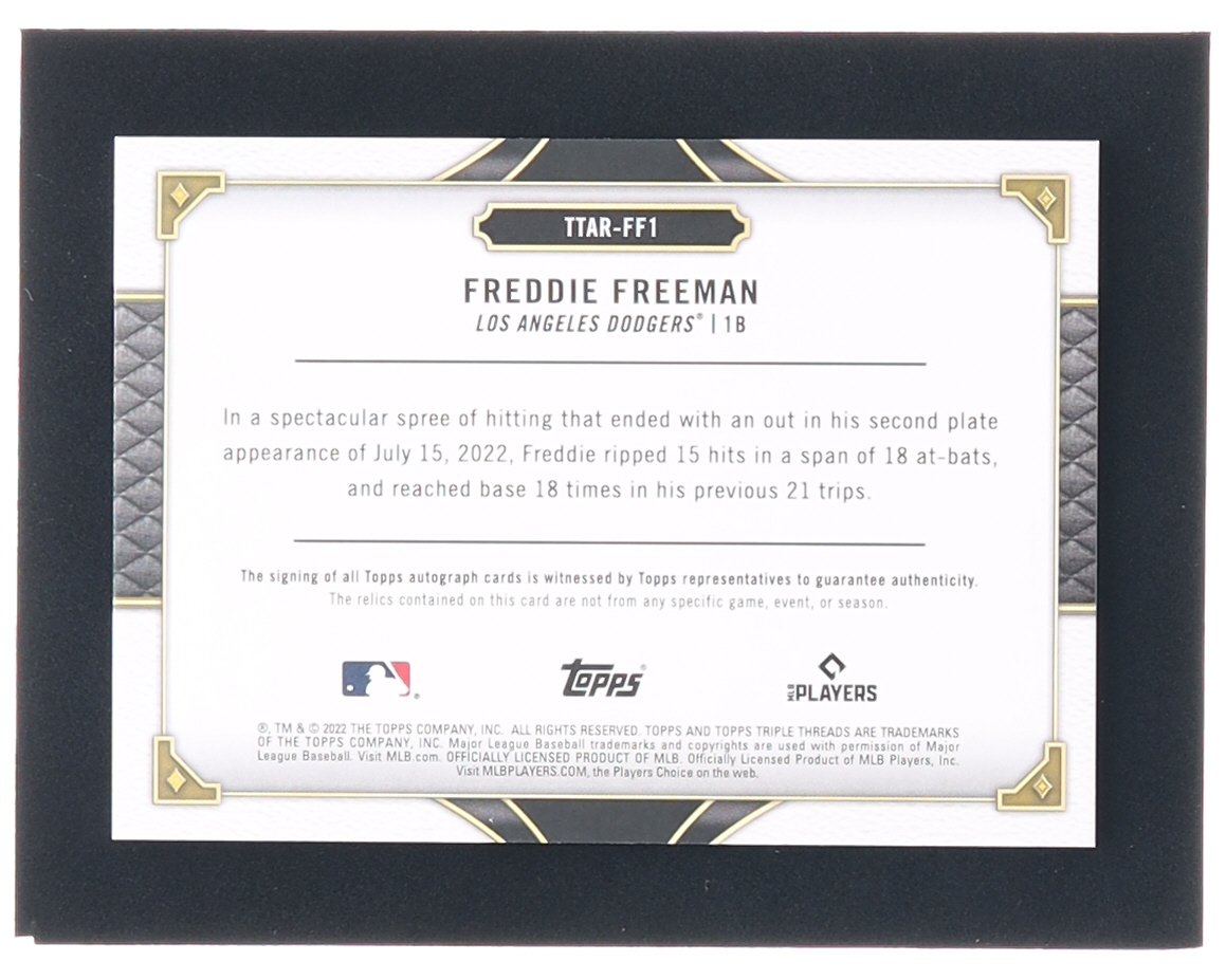 Freddie Freeman 2022 Topps Triple Threads Autograph Relics #TTARFF1 #05/27