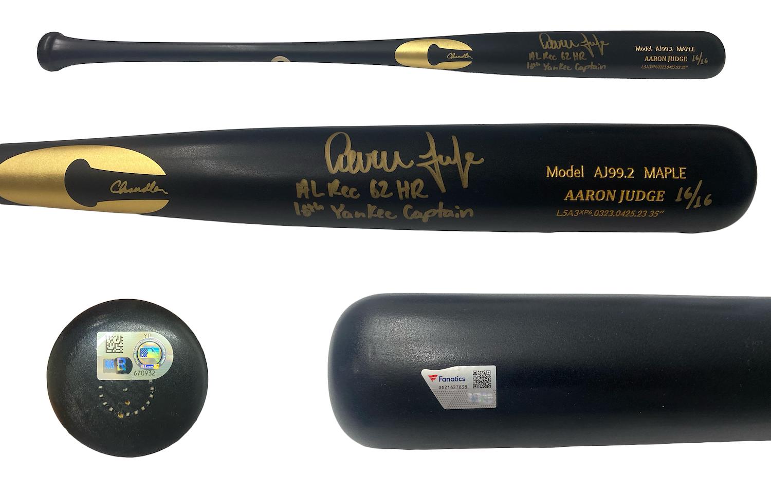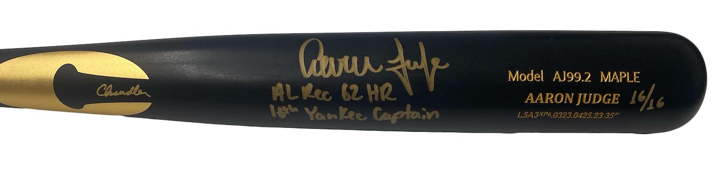 Aaron Judge Signed LE Chandler Player Model AJ99.2 Maple Baseball Bat Inscribed "AL Rec 62 HR" & "16th Yankee Captain" (MLB & Fanatics)