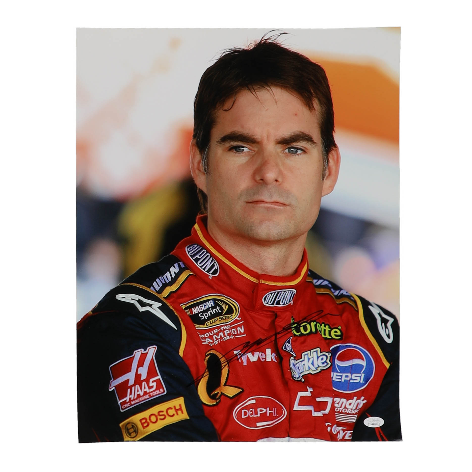 Photo measures 16" x 20" in size. Hand-signed by Jeff Gordon (HOF).