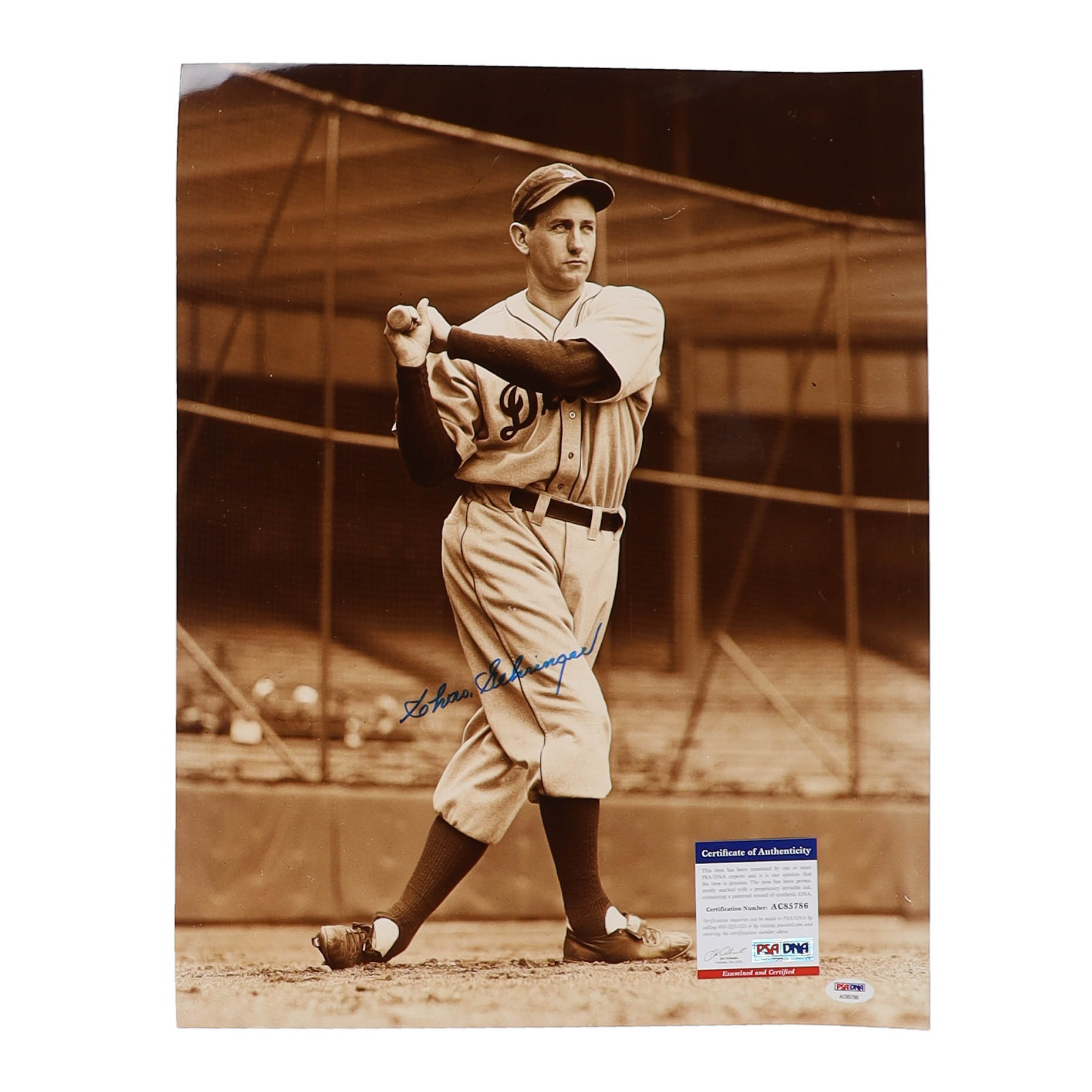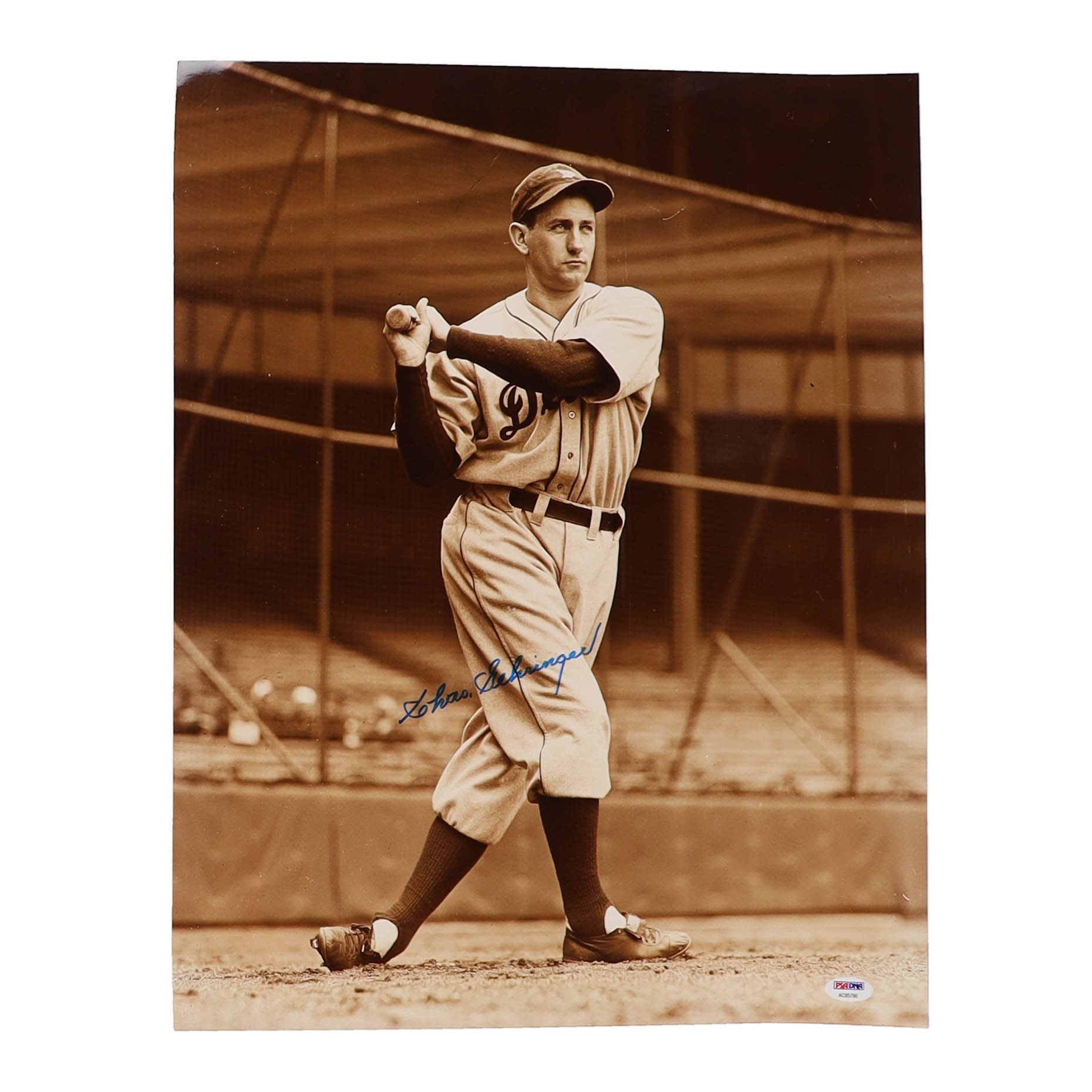 Photo measures 16" x 20" in size. Hand-signed by Charlie Gehringer (D. 1993, Detroit Tigers, HOF).