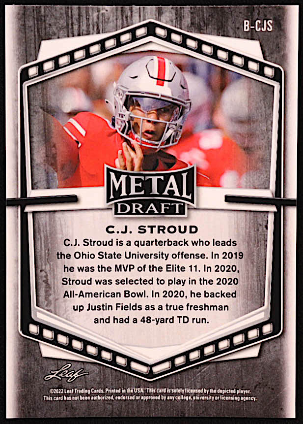 C.J. Stroud 2022 Leaf Draft and Prospects Metal Wave Pink #BCJS RC