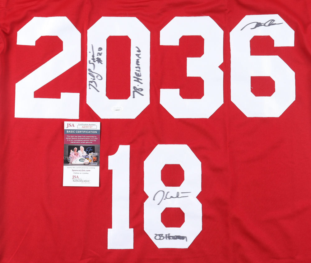 Jason White, Billy Sims, & Steve Owens Signed Jersey Inscribed "78-Heisman" & "'03 Heisman" (JSA)