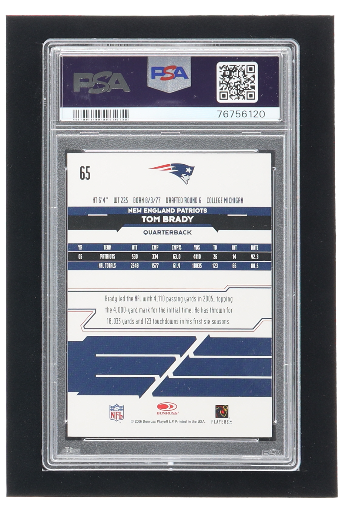 Tom Brady 2006 Leaf Rookies and Stars #65 (PSA 10)