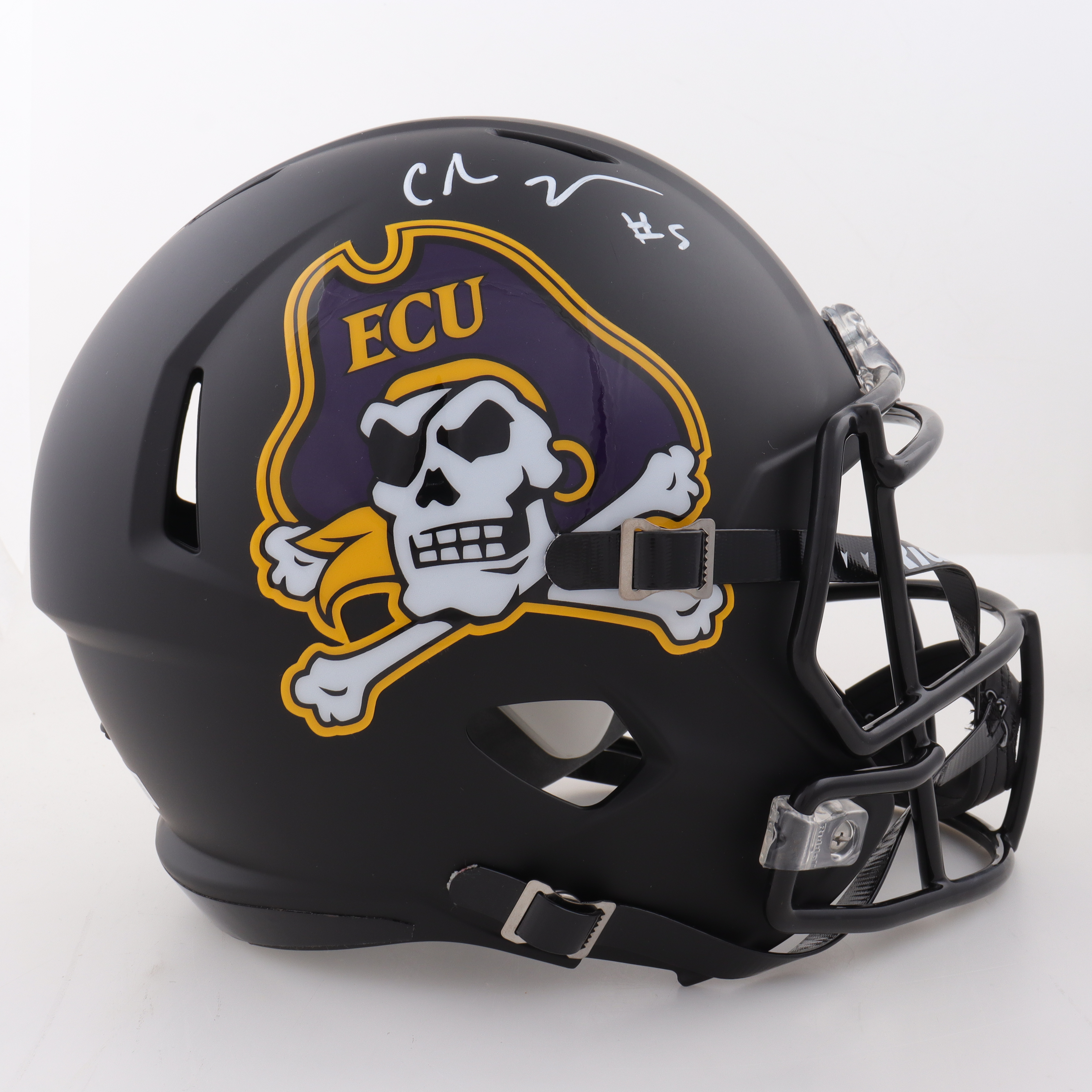 Riddell East Carolina Pirates full-size replica speed helmet. Hand-signed by Chris Johnson.