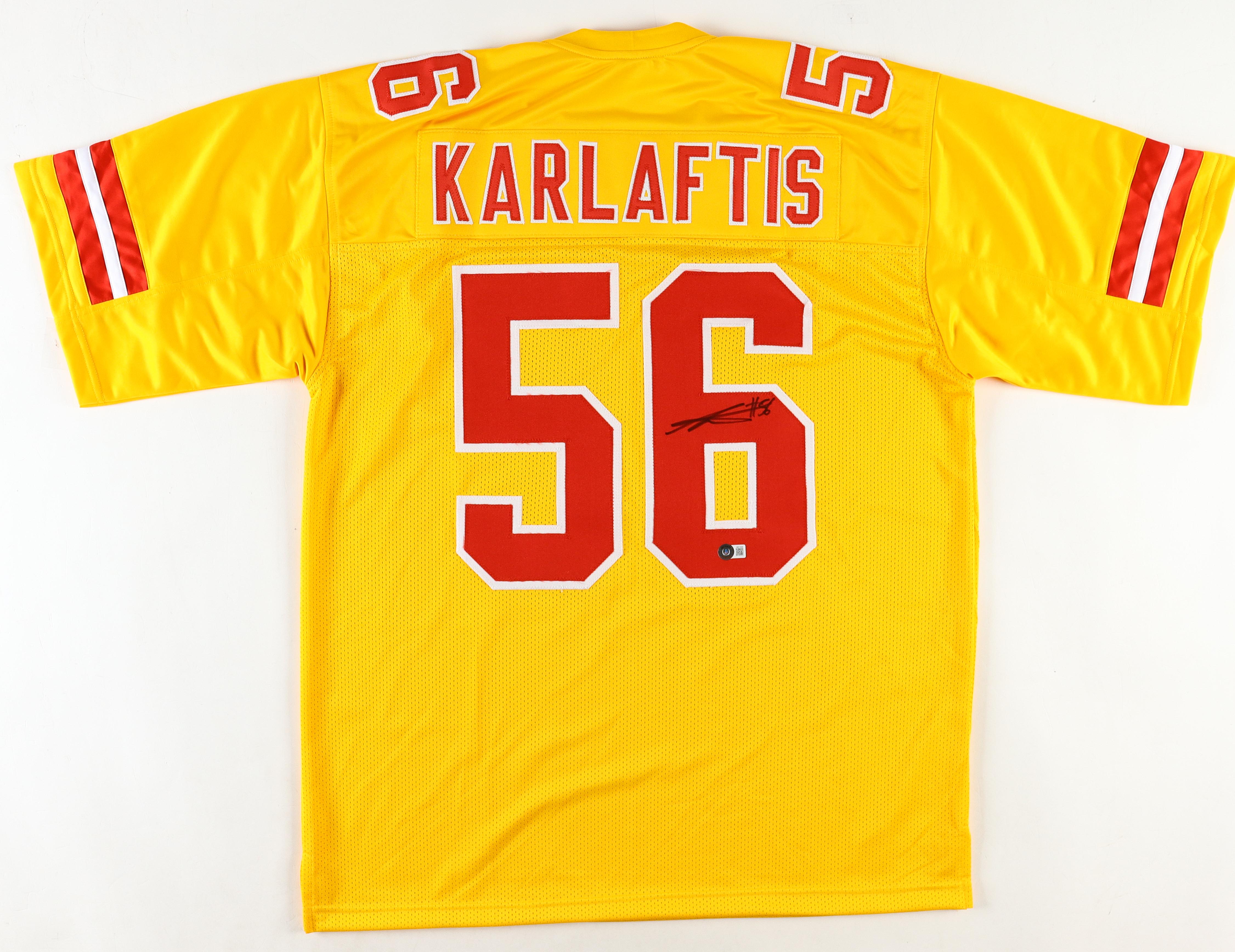 Custom jersey. Everything is sewn on, size XL. Hand-signed by George Karlaftis.