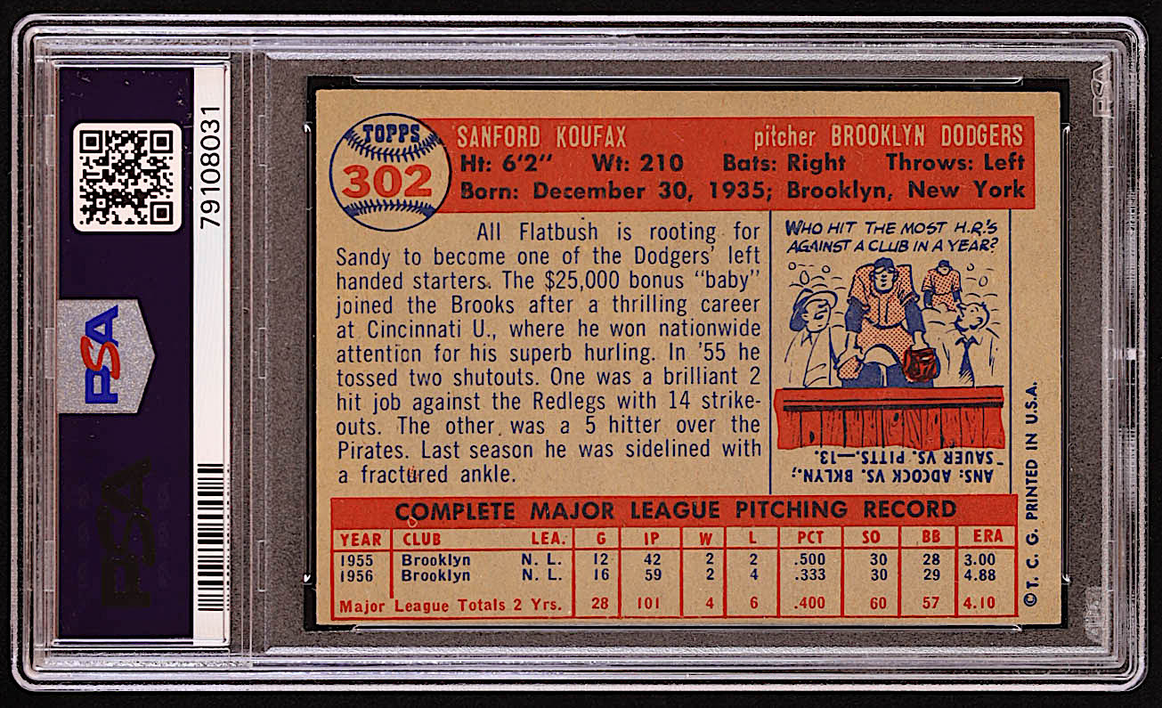 Sandy Koufax 1957 Topps #302 DP (PSA 5)