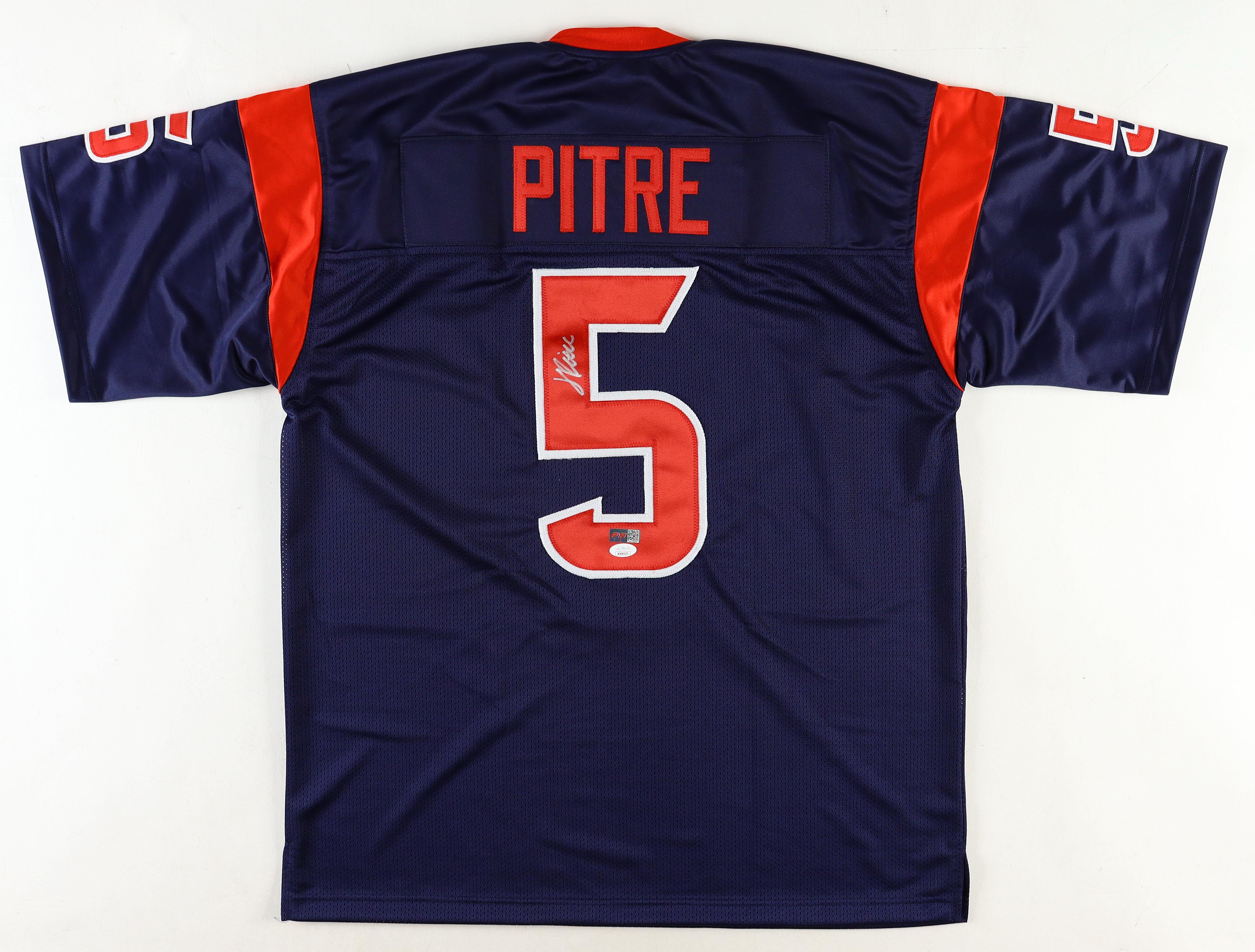 Custom jersey. Everything is sewn on, size XL. Hand-signed by Jalen Pitre.