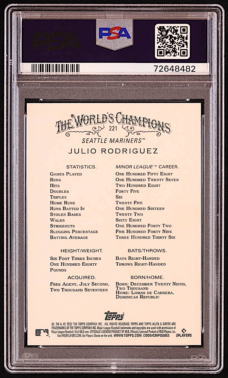 Julio Rodriguez 2022 Topps Allen and Ginter #221 RC (PSA 10)