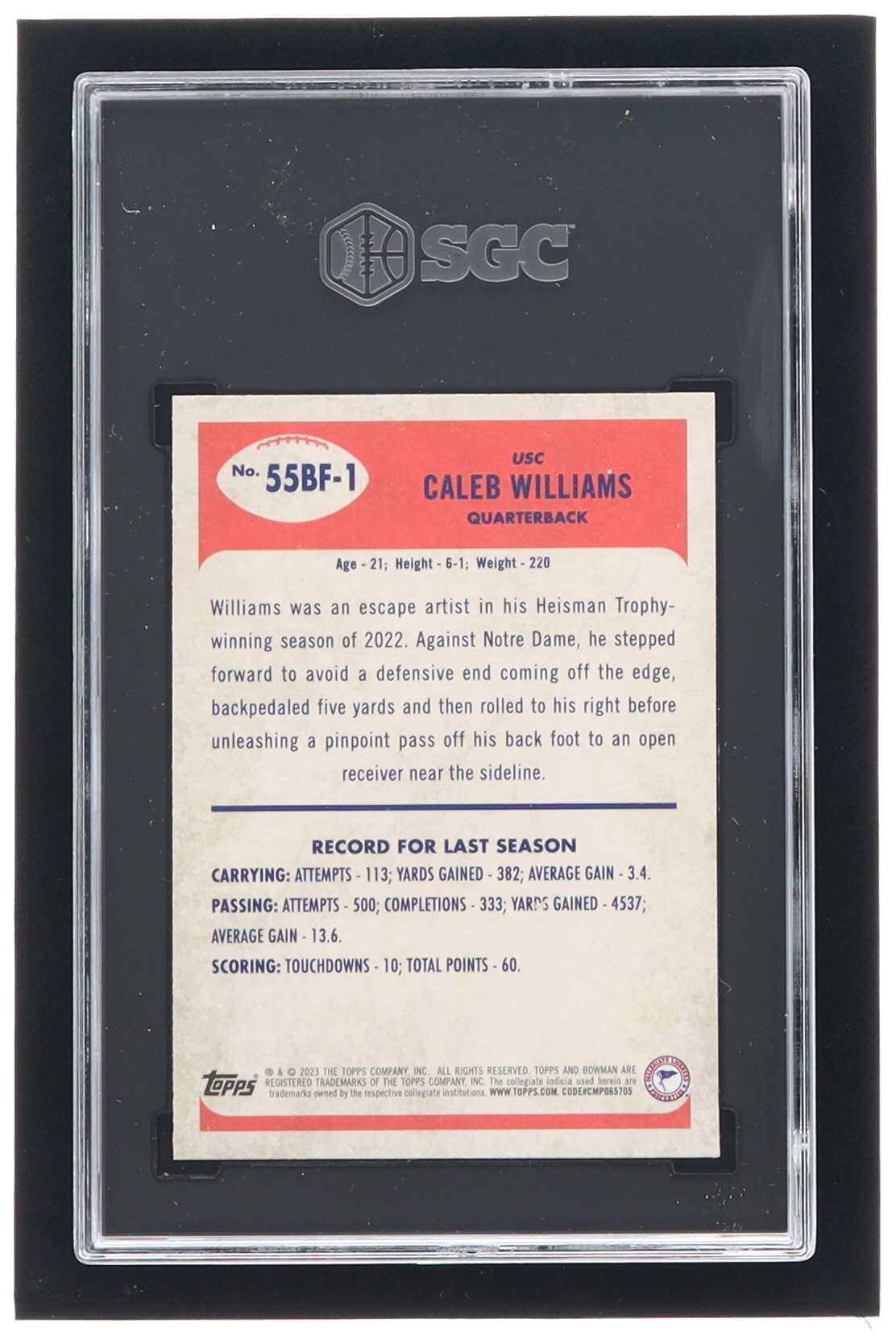 Caleb Williams 2023 Bowman Chrome University '55 Bowman #55BF1 RC (SGC 10)