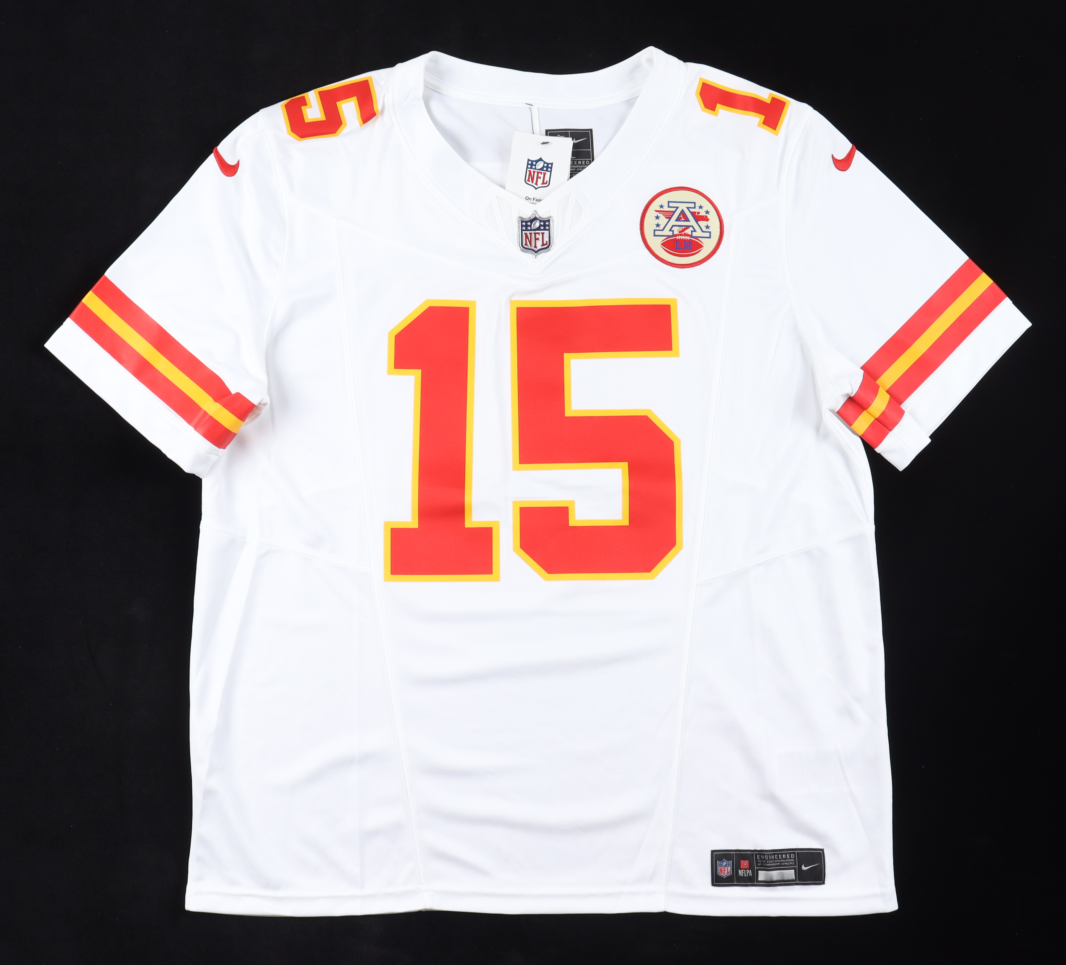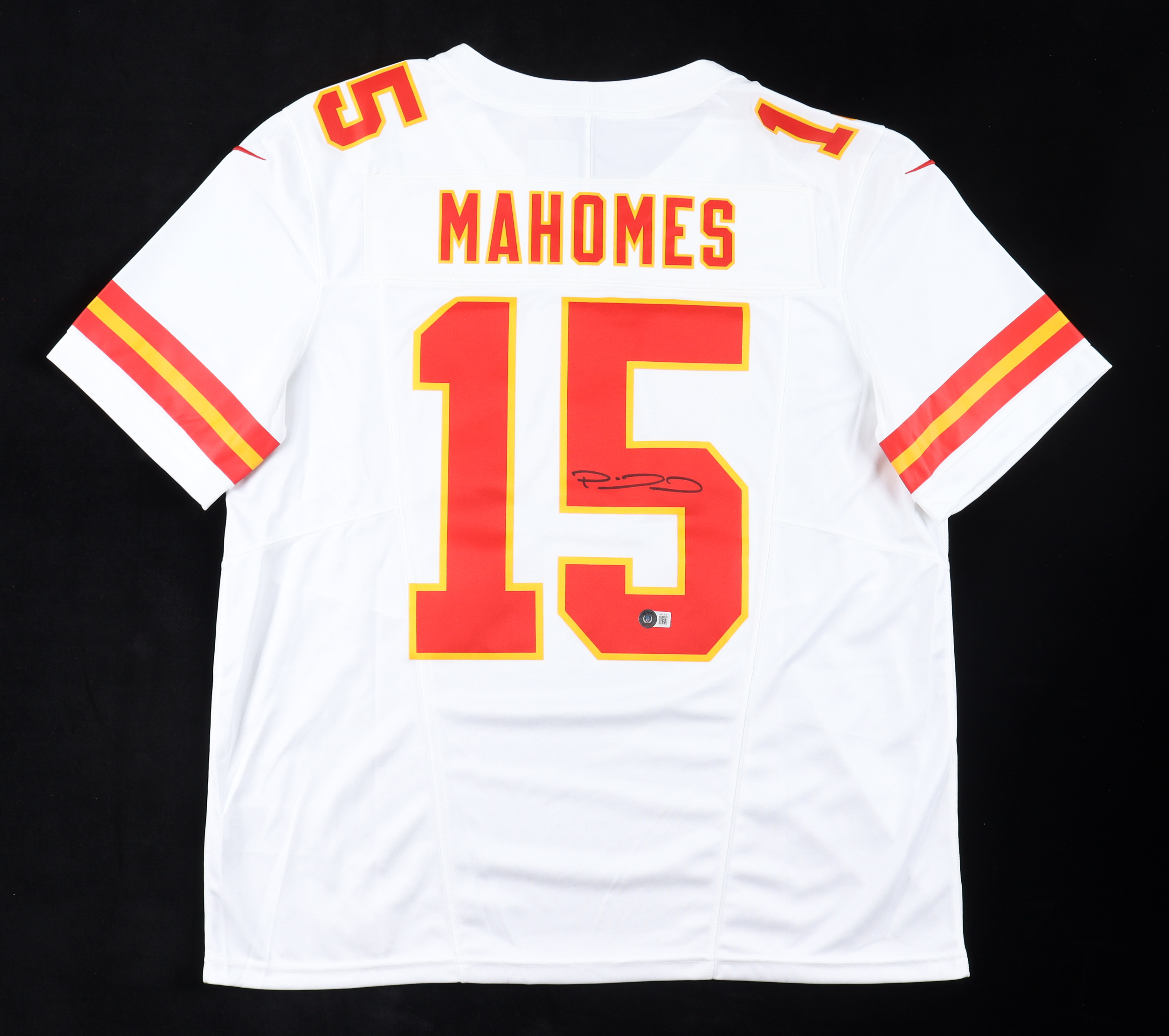 Nike style jersey with everything pressed on, size XL. Hand-signed by Patrick Mahomes II (Kansas City Chiefs).