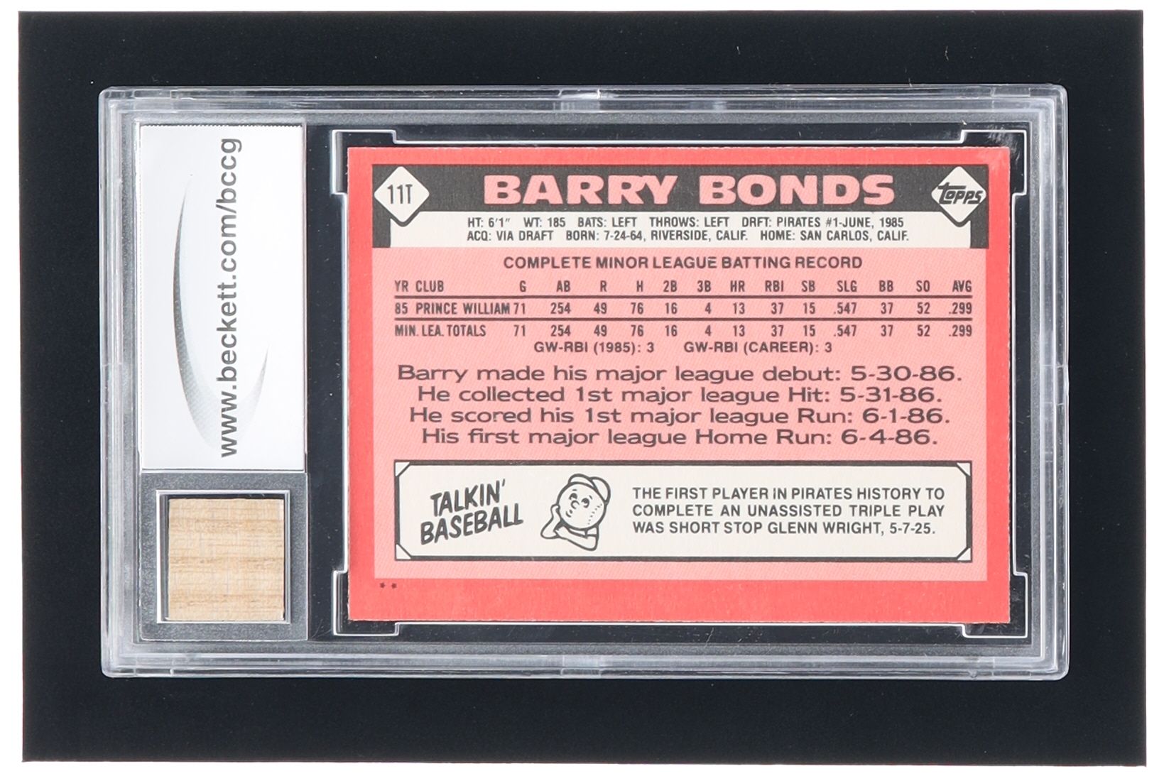 Barry Bonds 1986 Topps Traded #11T XRC with Game-Used Bat (BCCG 10)
