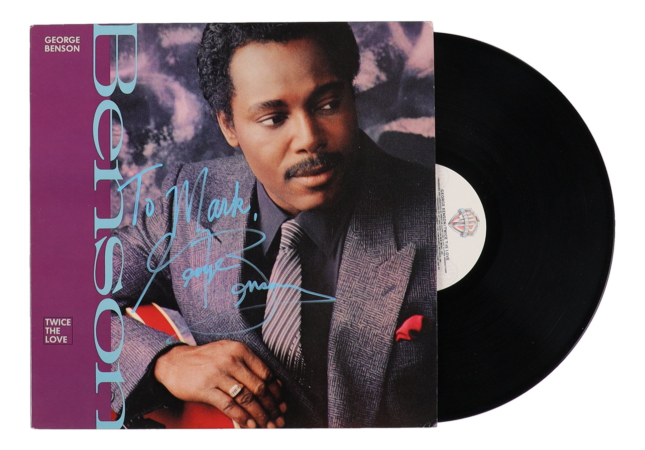 Vinyl record album cover has been hand-signed and inscribed by George Benson. Please note the vinyl record is included, the cover shows signs of wear and the inscription has been personalized to "Mark".
