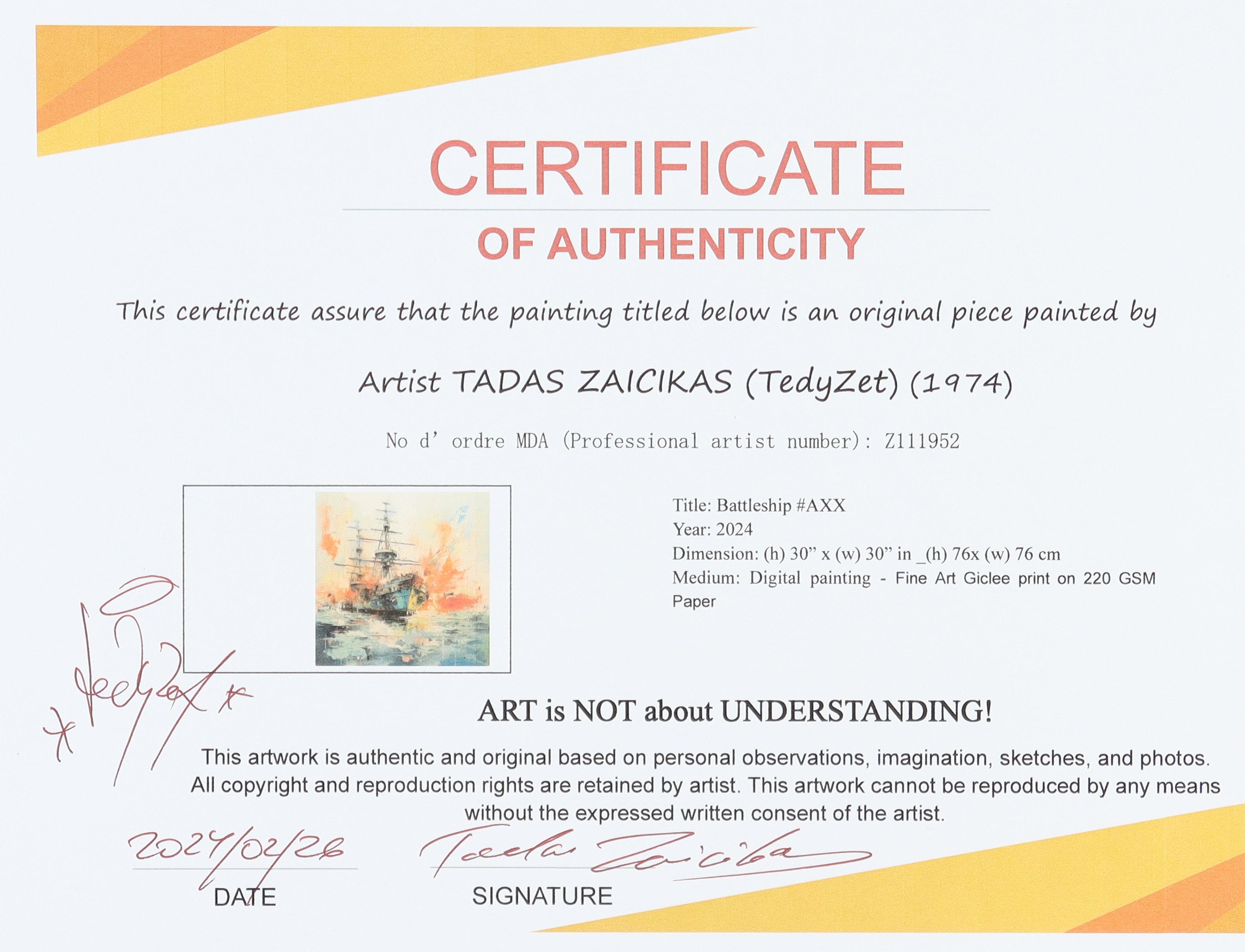 Tadas Zaicikas (TedyZet) Signed 2024 "Battleship #AXX" 30x30 Fine Art Giclee (Zaicikas)