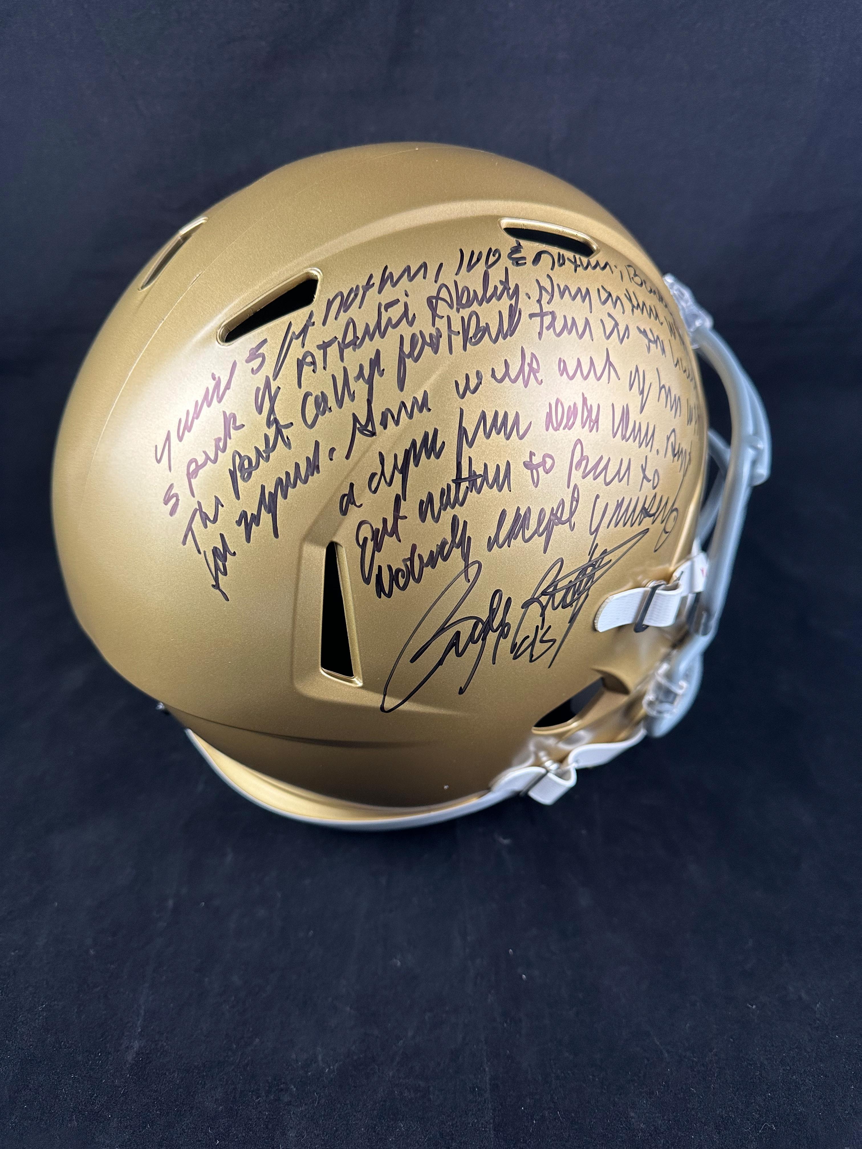 Rudy Ruettiger Signed Notre Dame Fighting Irish Full-Size Speed Helmet with Extensive Inscription (JSA)