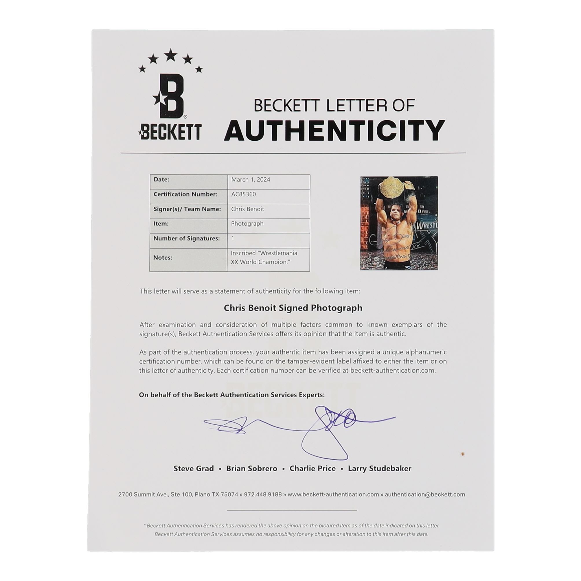Chris Benoit Signed WWE 8x10 Photo Inscribed "Wrestlemania XX World Champion" (Beckett)