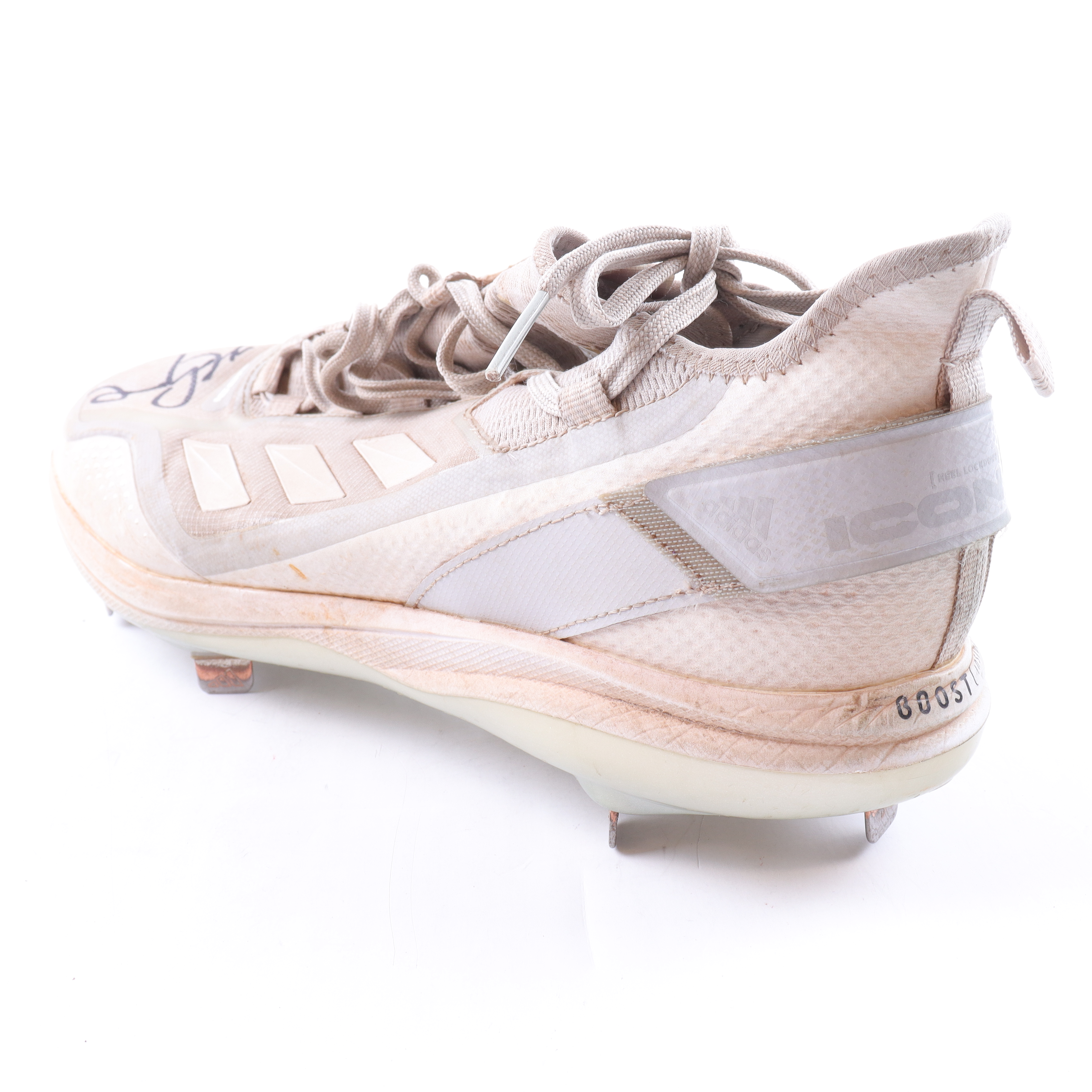 Adidas Icon Game-Used baseball cleat. Hand-signed by Mark Grace (Chicago Cubs). Please note, the cleat has been game-used by an unknown player.