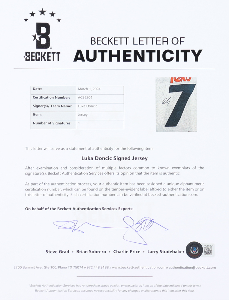 Luka Doncic Signed Jersey (Beckett)