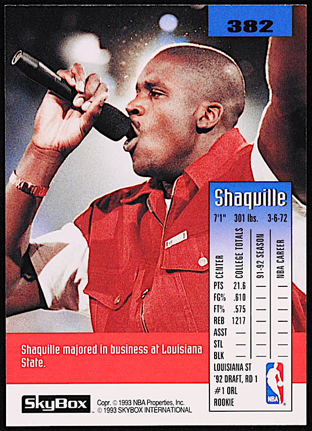 Shaquille O'Neal 1992-93 SkyBox #382 SP RC