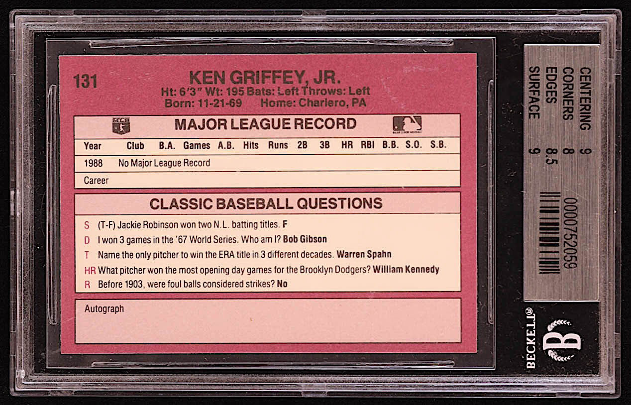 Ken Griffey Jr. 1989 Classic Travel Orange #131 RC (BGS 8.5)