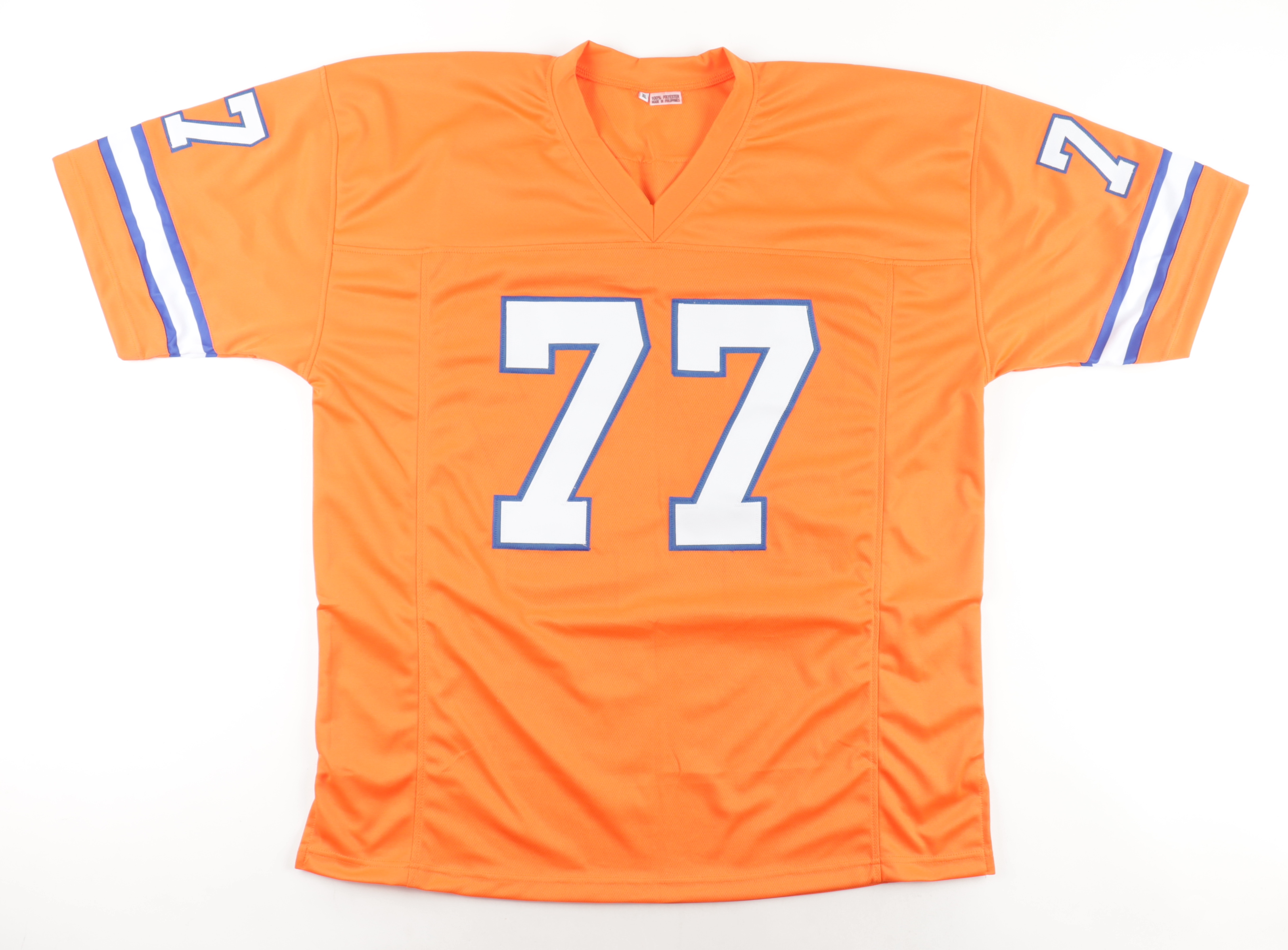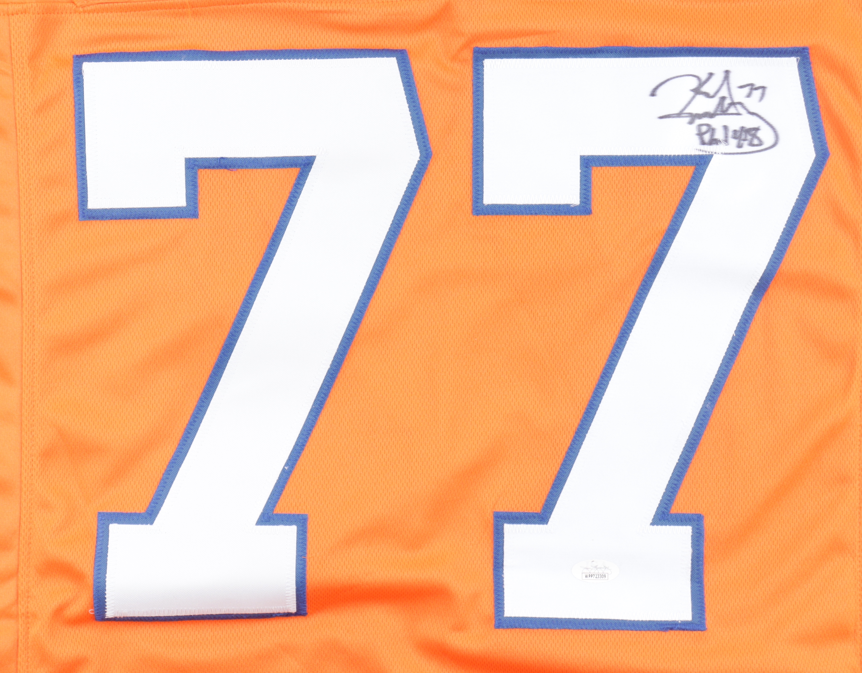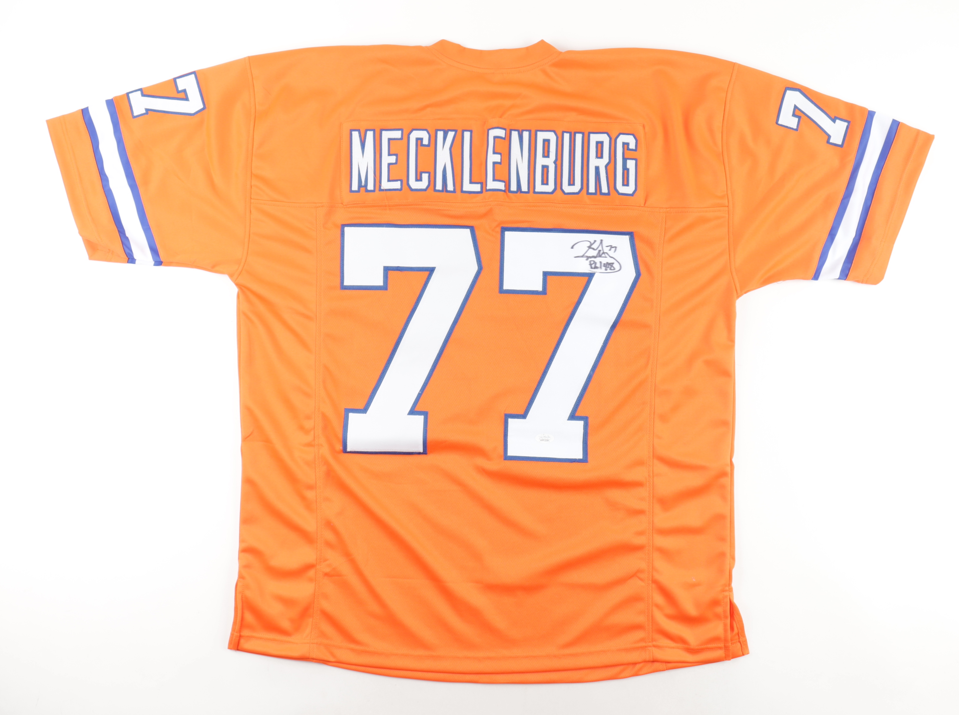 Custom jersey. Everything is sewn on, size XL. Hand-signed by Karl Mecklenburg.