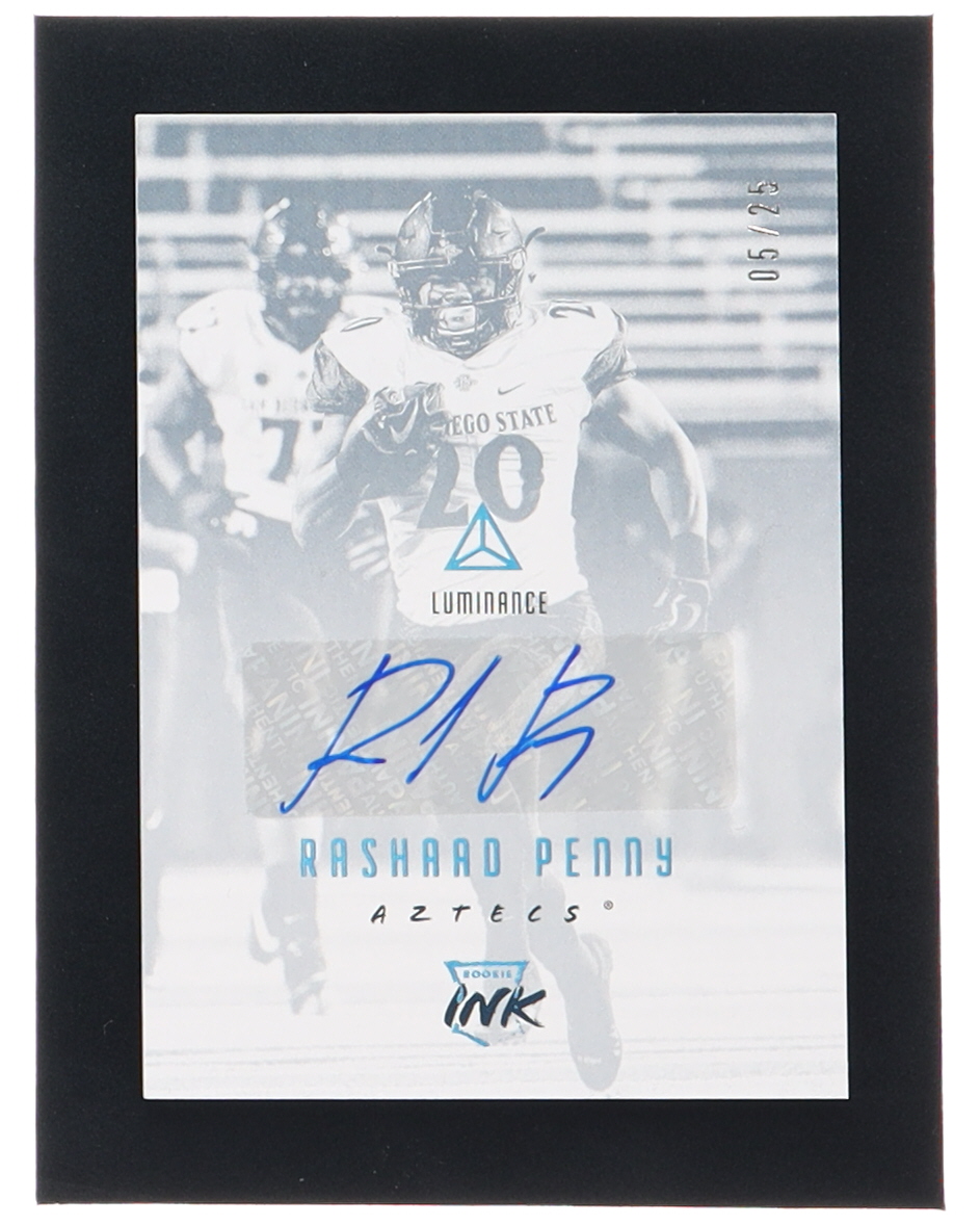 Rashaad Penny 2018 Panini Luminance Rookie Ink Platinum Blue #80 RC #05/25