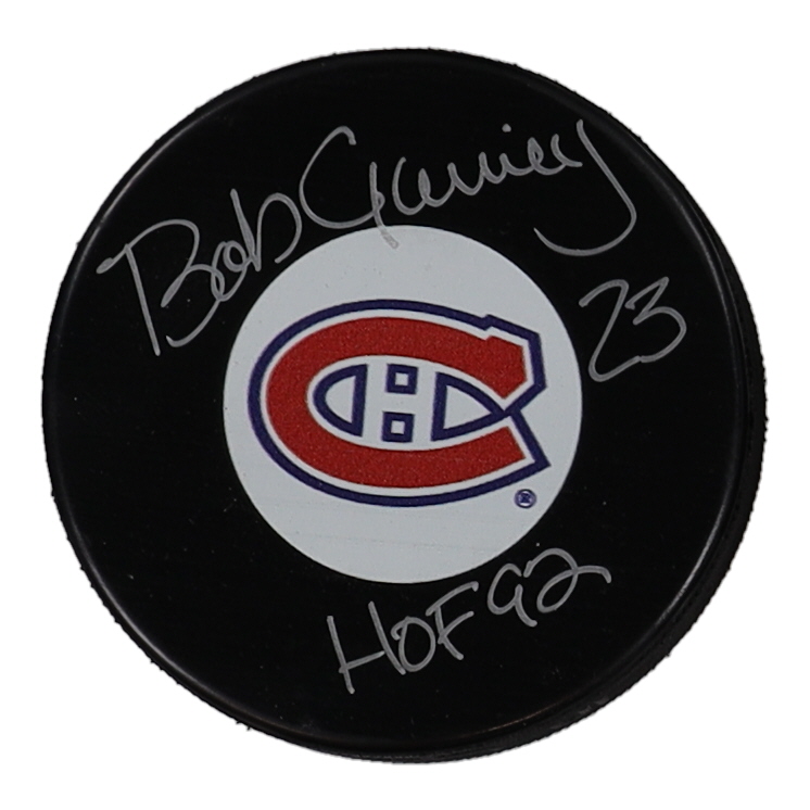 Montreal Canadiens logo hockey puck. Hand-signed and inscribed by Bob Gainey (HOF).