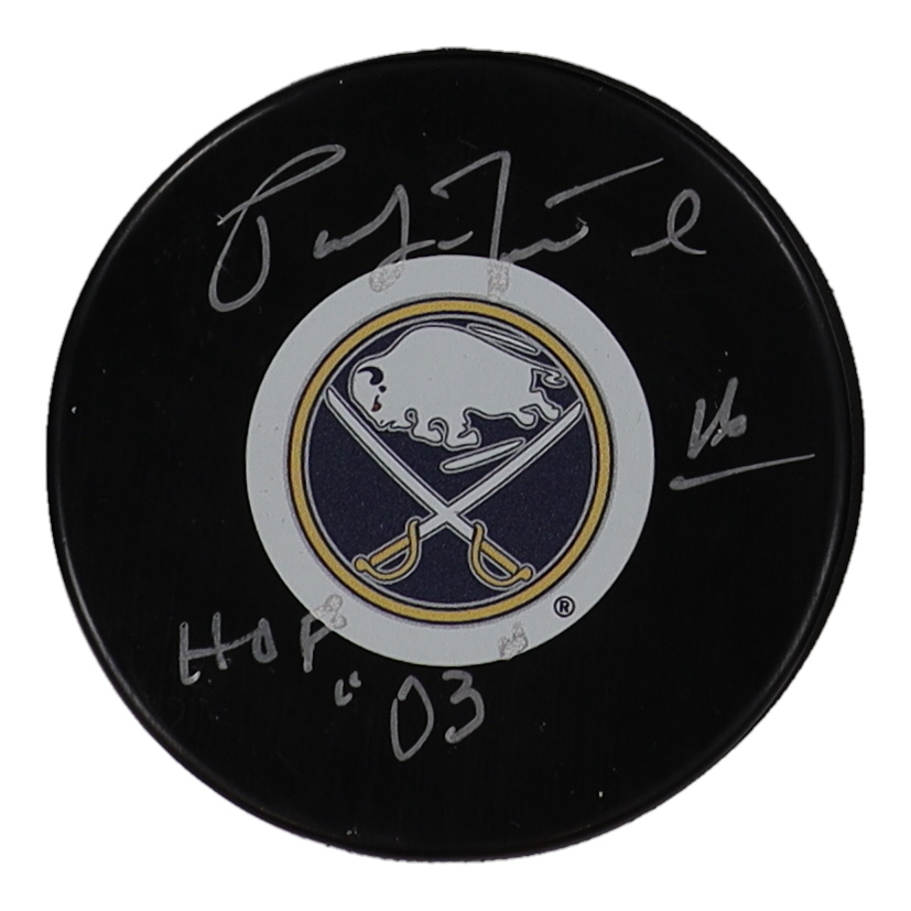 Pat LaFontaine Signed Sabres Logo Hockey Puck Inscribed "HOF 03" (COJO)