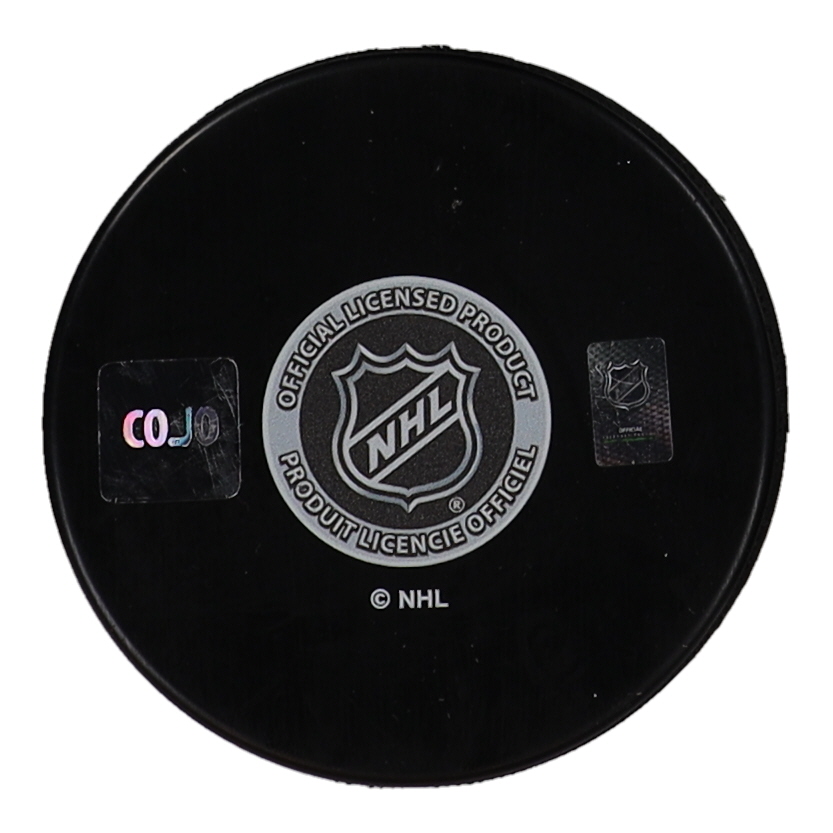 Buffalo Sabres logo hockey puck has been hand-signed and inscribed by Pat LaFontaine (HOF)